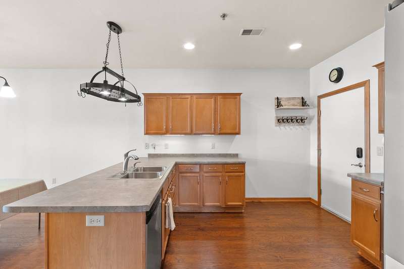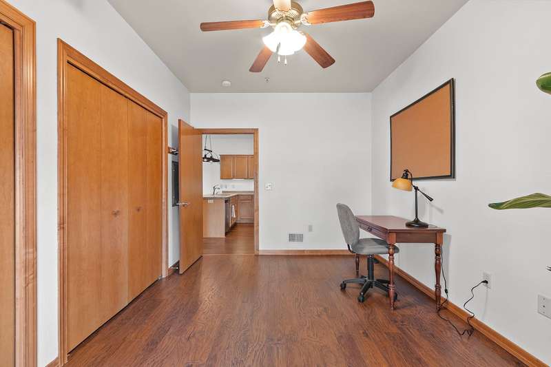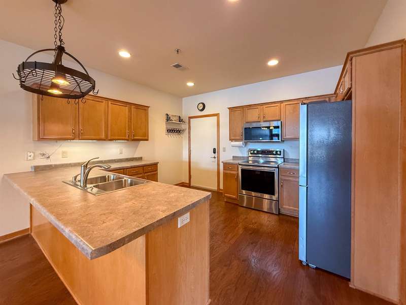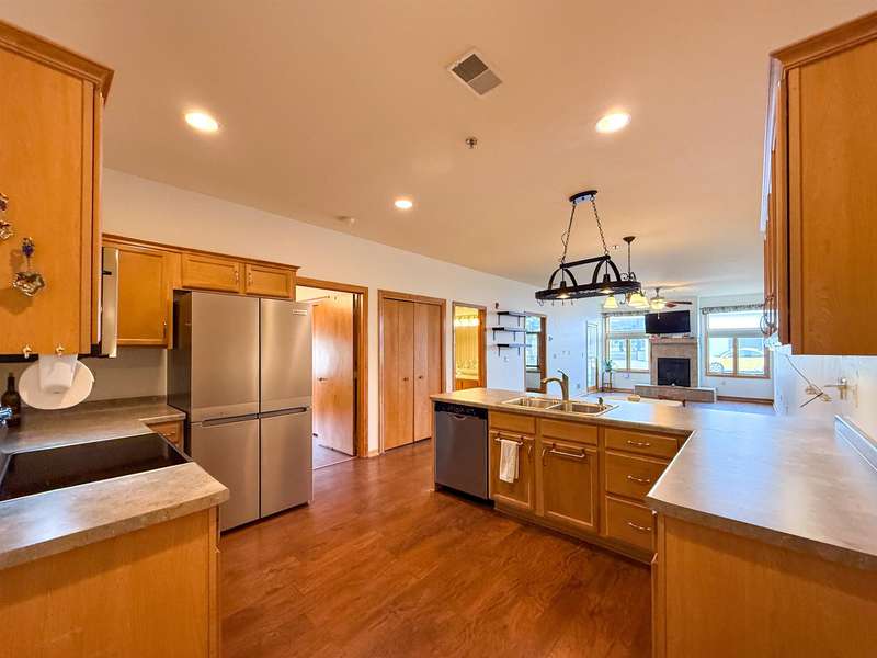 Fantastic opportunity to own in West De Pere! First floor end unit condo located in the heart of downtown De Pere. Close to everything from local restaurants, shopping and highway access. Open concept floor plan. Living room has a gas fireplace and access to covered porch. Maple cabinets throughout kitchen & new appliances are included! Two spacious bedrooms. Updated master bath offers a walk in shower & double vanity. First floor laundry hook-ups. Condo amenities included secured building, indoor pool, exercise room, rooftop patio, heated underground parking. One outside parking spot and one inside parking spot. Monthly dues are $350. Professional photos being added 9/20/2025.