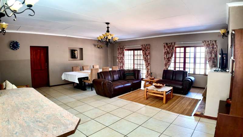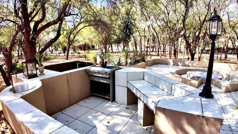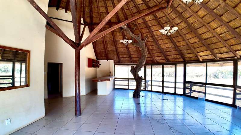 Luxury Game Lodge sold lock, stock and barrel as a running concern with extensive accommodation opportunities. Ideal to cater for the international market or local market. Main Lodge: Large thatched-roof lodge Entertainment and dining area with fireplace Bar area Catering kitchen Separate scullery Separate gents & ladies bathrooms Spacious porch Laundry facilities Thatched Chalets: 6x Chalets, each with en-suite bathrooms Tent Camp: 5x Stands Each stand with private ablution facilities Residential Houses: 4x Houses on the property 2x PH (Professional Hunter) rooms, each with en-suite bathrooms Infrastructure: Fully game-fenced farm 4x Large sheds Cold room and slaughtering facilities Staff Quarters 10x Hides for hunting Cattle kraal and working facilities 4x Horse stables with facilities 3x Equipped boreholes 6x Water tanks 6x Water crypts for game 5x Dams 2x Cement dams 25kVA Generator 2x Eskom power points 5kVA Solar power system Loose Assets (Included in Sale): Furniture Tractor TLB (Tractor-Loader-Backhoe) Game viewer vehicle Forklift Game Included in Sale: 2x Lions (male and female) – with permits Giraffe Zebras Kudu Impala Nyala Luukse Wildplaas Lodge te koop, sluit alles in (slot, voorraad en toerusting) as 'n lopende saak met uitgebreide akkommodasie geleenthede. Ideaal om die internasionale of plaaslike mark te bedien. Hoof lodge: Groot lodge met grasdak Vermaak- en eetarea met kaggel Kroeg area Spyseniering kombuis Afsonderlike opwaskamer Afsonderlike here- en dames badkamers Ruim stoep Wasgoed geriewe Grasdak Chalets: 6x Chalets, elk met en suite-badkamers Tentkamp: 5x Staanplekke Elke staanplek met eie ablusiegeriewe Residensiële Huise: 4x Huise op die plaas 2x PH (Professionele Jagter) kamers, elk met en suite-badkamers Infrastruktuur: Plaas is wildswerend omhein 4x Groot stoore Koelkamer en slagfasiliteite Werkers Huise 10x Skuilings vir jag Beeskrale en werksfasiliteite 4x Perdestalle met fasiliteite 3x Toegeruste boorgate 6x Watertenks 6x Waterkrippe vir wild 5x Grond Damme 2x Sement Damme 25kVA Kragopwekker 2x Eskom kragpunte 5kVA Sonkragstelsel Los Bates (Ingesluit in Verkoop): Meubels Trekker TLB (Trekker-laaier-teruggraaf) Wildkykvoertuig Vurkhyser Wild ingesluit in verkoop: 2x Leeus (manlik en vroulik) – met permitte Kameelperde Sebras Koedoes Rooibokke Nyalas