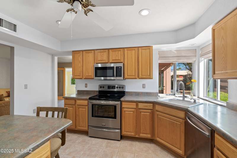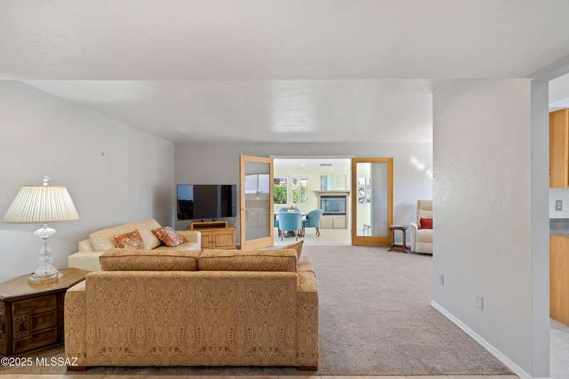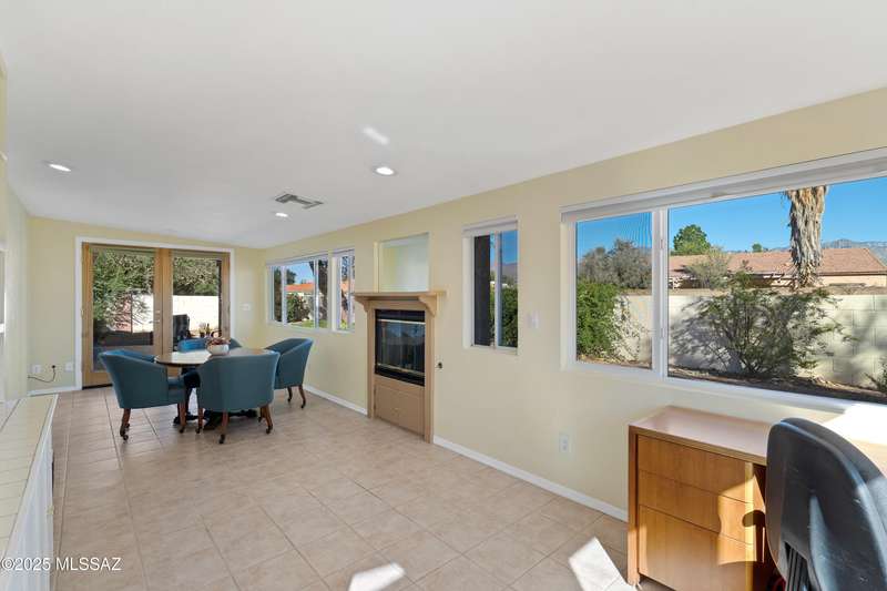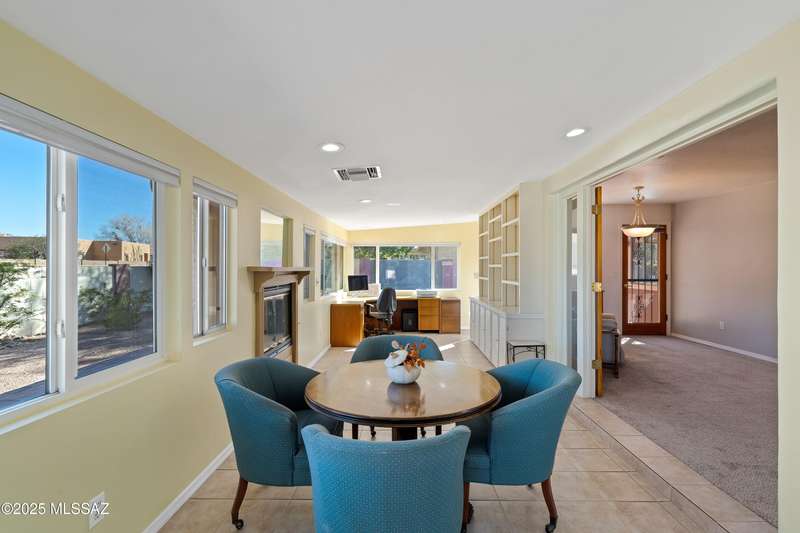 Location, Location. Move in ready. Well cared for 3BR 2BA in highly desirable Vista Del Rio neighborhood. Large open living rm w lots of natural light from the enclosed AZ room which is heated and cooled. Sq ft NOT included from assessor office. No permits. This lovely cozy rm with gas fireplace makes a great play rm, reading rm, office/den. Built in book case w 2 exterior doors for ez patio entertaining. Lots of picture windows with Mountain views and its exterior garden landscape makes outdoor living more enjoyable. TV wash river walk just minutes behind and a small park w swings and play tower. Walk your pets, jog or bike. This voluntary HOA is only $45 a yr Streets recently repaved. Check out the Vista Del Rio cultural park w it's archeological site blessed by the Tohono