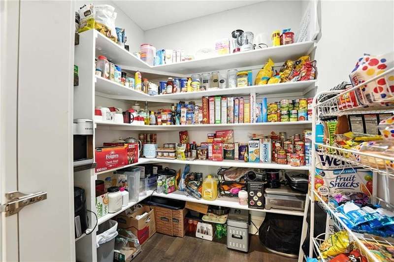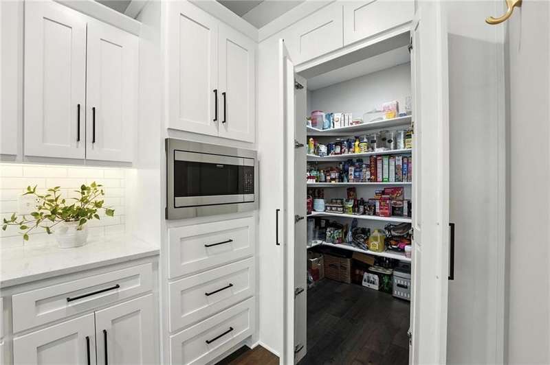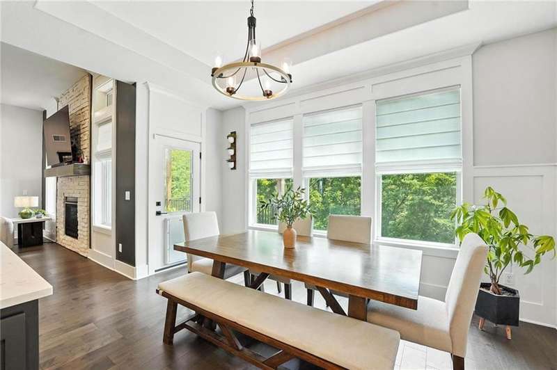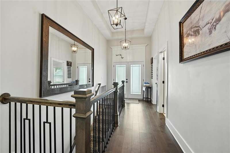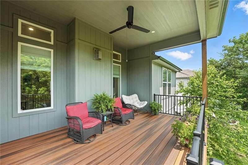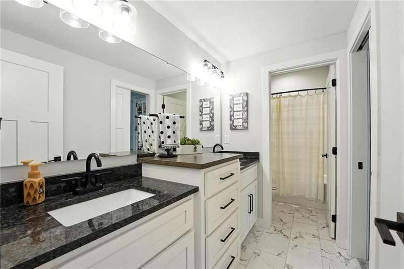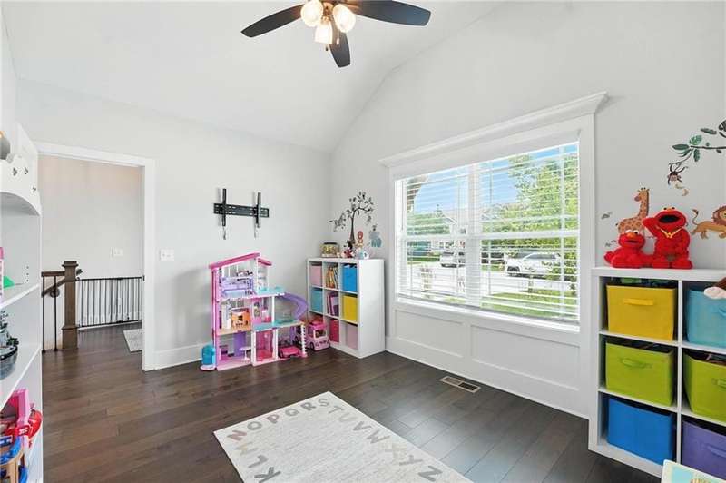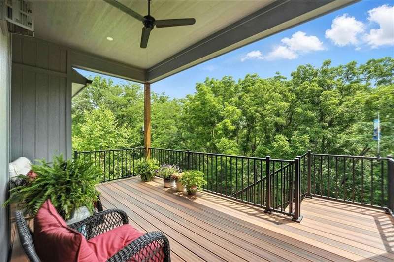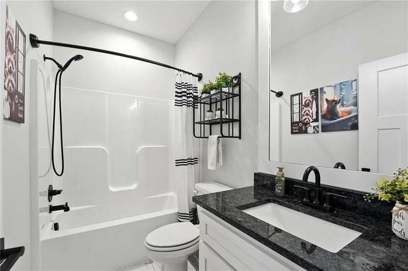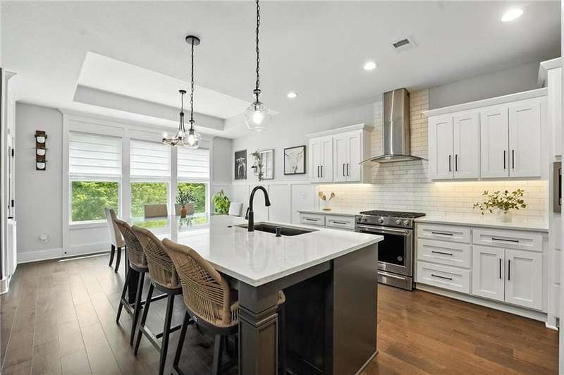 Welcome to this beautifully designed Reverse 1.5 Story home offering 4 bedrooms, 3 full bathrooms, and over 3,150 square feet of living space. Thoughtfully built for comfort and entertainment. Step inside to find a stunning kitchen with hardwood floors, a gas range, quartz countertops, soft close cabinets, and a walk-in pantry with built in appliance station. The main living area impresses with 9ft ceilings and a stunning stone fireplace, creating a warm and inviting centerpiece. Large laundry room on the main level with additional cabinet storage. All bathrooms are upgraded with sleek granite countertops and tile flooring, adding a touch of luxury throughout the home. Downstairs, enjoy a massive living area perfect for movie nights or hosting friends, complete with a granite-topped wet bar and a built-in mini fridge. This property backs up to green space offering plenty of privacy. View the backyard from the covered deck overlooking a fully fenced yard or enter out the walk-out basement that opens to a private patio retreat. The deep 3 car garage offers ample space for storage or large vehicles. Beautiful landscaping with gorgeous river rock for low maintenance flower beds. Dont miss your chance to own this versatile and elegant homeperfectly blending everyday functionality with standout features for entertaining.