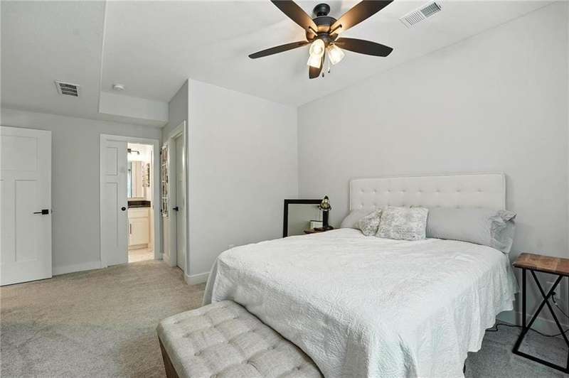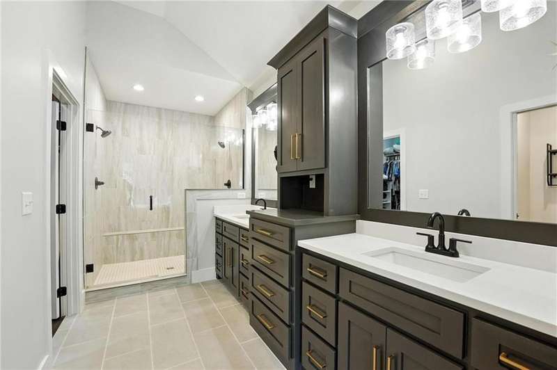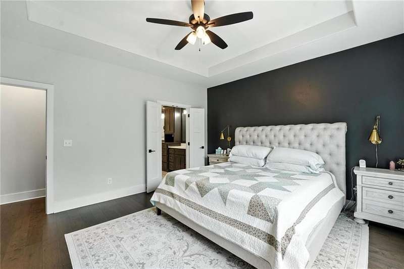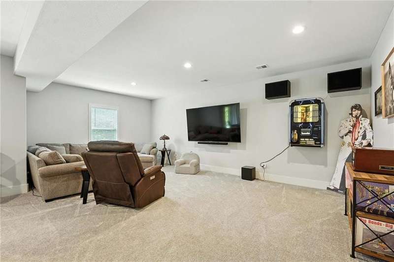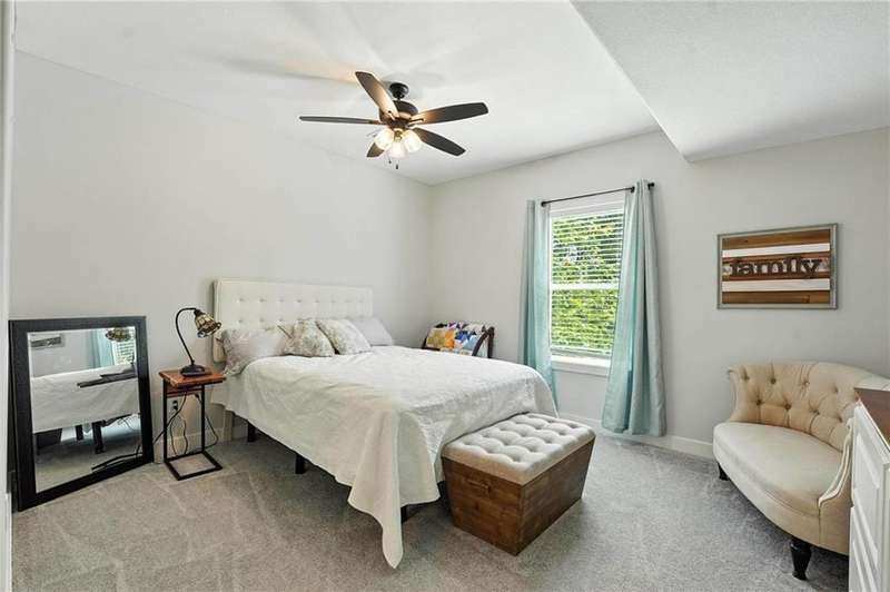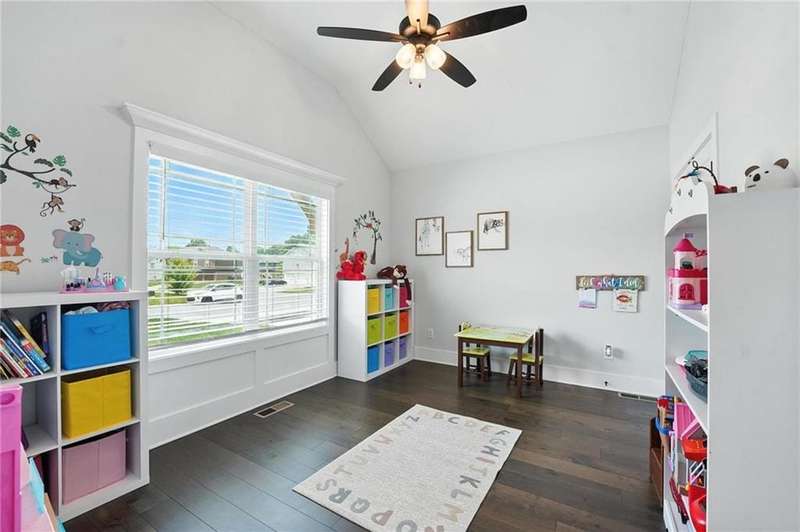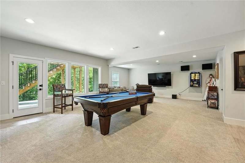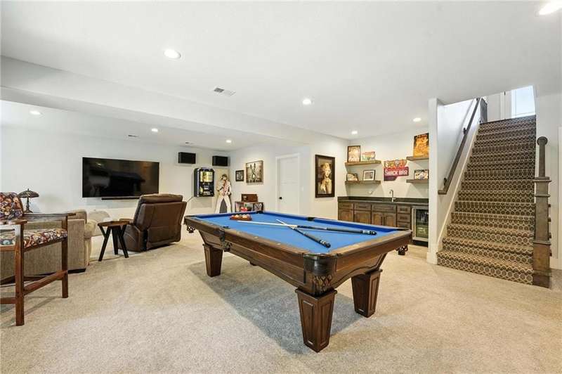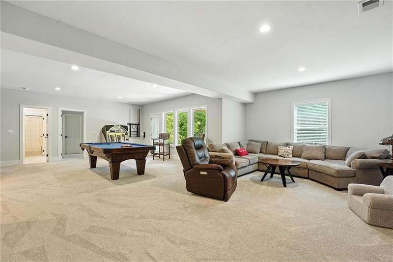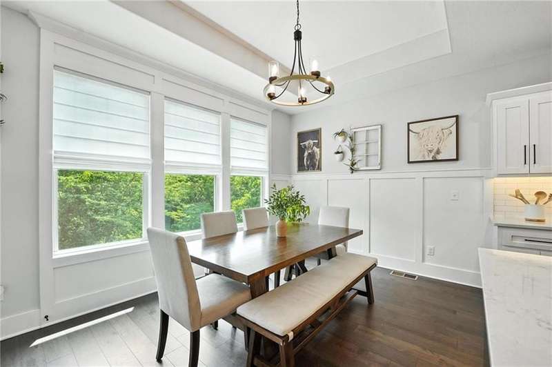 Welcome to this beautifully designed Reverse 1.5 Story home offering 4 bedrooms, 3 full bathrooms, and over 3,150 square feet of living space. Thoughtfully built for comfort and entertainment. Step inside to find a stunning kitchen with hardwood floors, a gas range, quartz countertops, soft close cabinets, and a walk-in pantry with built in appliance station. The main living area impresses with 9ft ceilings and a stunning stone fireplace, creating a warm and inviting centerpiece. Large laundry room on the main level with additional cabinet storage. All bathrooms are upgraded with sleek granite countertops and tile flooring, adding a touch of luxury throughout the home. Downstairs, enjoy a massive living area perfect for movie nights or hosting friends, complete with a granite-topped wet bar and a built-in mini fridge. This property backs up to green space offering plenty of privacy. View the backyard from the covered deck overlooking a fully fenced yard or enter out the walk-out basement that opens to a private patio retreat. The deep 3 car garage offers ample space for storage or large vehicles. Beautiful landscaping with gorgeous river rock for low maintenance flower beds. Dont miss your chance to own this versatile and elegant homeperfectly blending everyday functionality with standout features for entertaining.