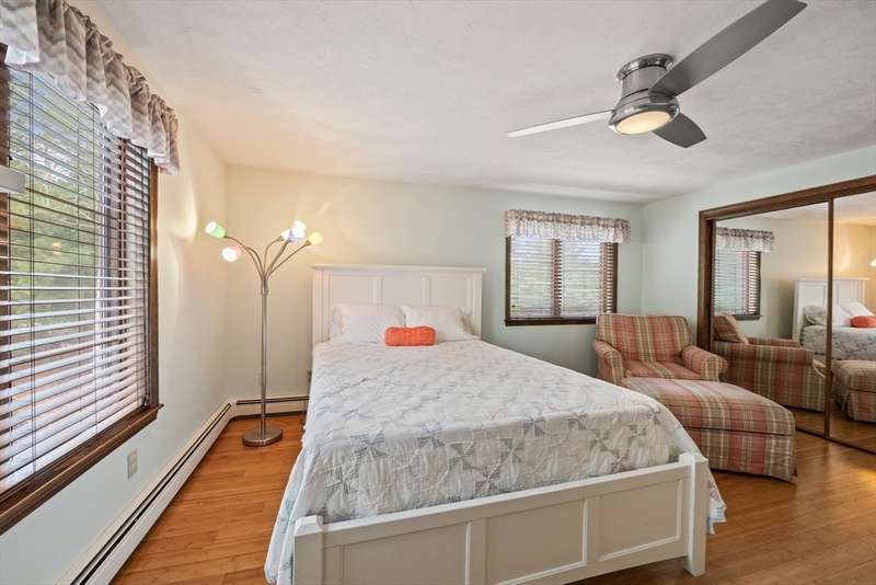 Falmouth Sand Pointe Shores Exceptional contemporary in sought-after Sand Pointe Shores with 3 private beaches and tennis. This home offers 3 bedrooms, 2.5 baths, a living room with gas fireplace, cathedral ceiling, and sliders to a wrap-around deck. A separate family room with fireplace adds another cozy space. The custom kitchen features gas cooking, stainless appliances, glass tile backsplash, recessed lighting, and deck access. The first floor includes a half bath and garage entry. Upstairs, the primary suite has a jacuzzi bath, plus 2 bedrooms and a full bath. A finished lower level provides flexible space for office, gym, or playroom. Hardwood and bamboo floors throughout. Quality details include 2x6 construction, Andersen windows, pine doors, and gas heat. Beautifully maintained don t miss this Sand Pointe Shores gem!