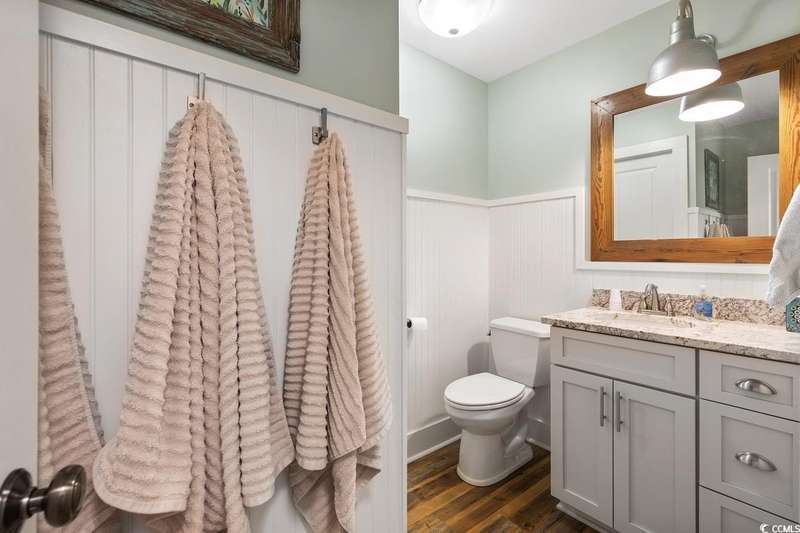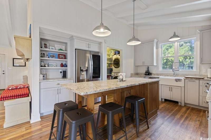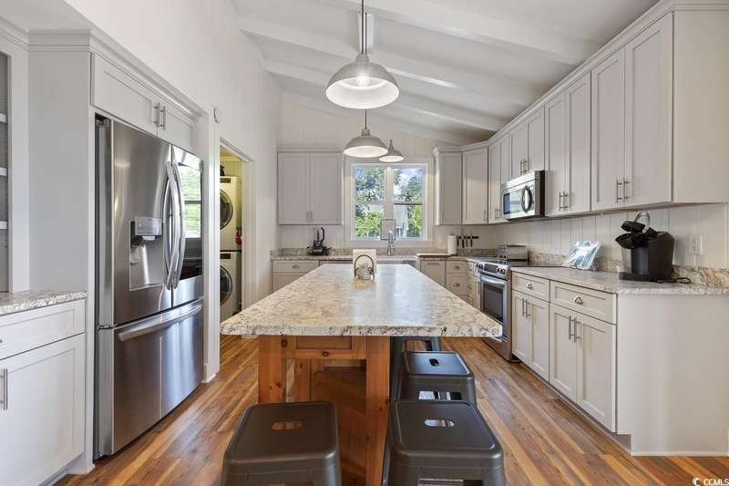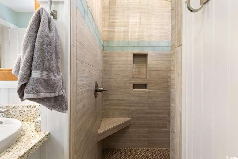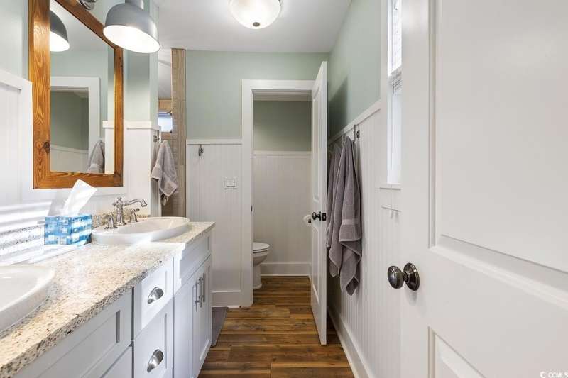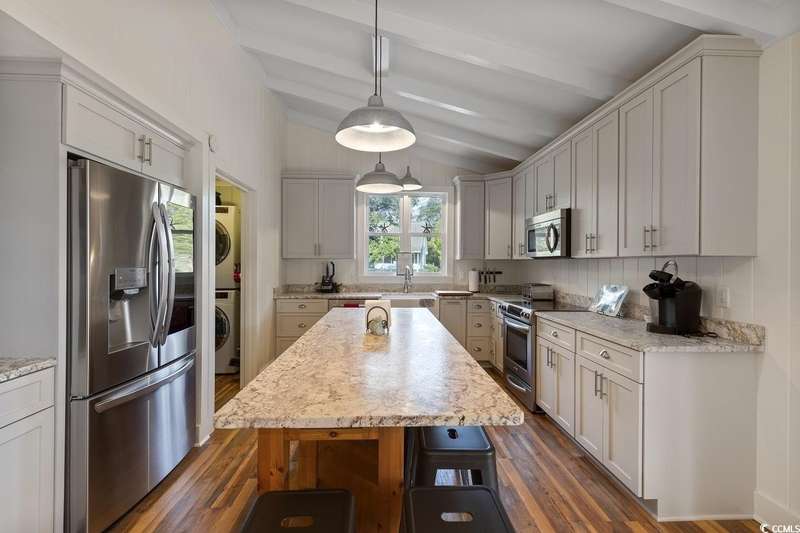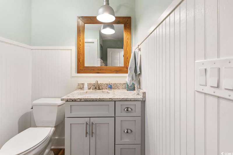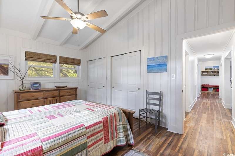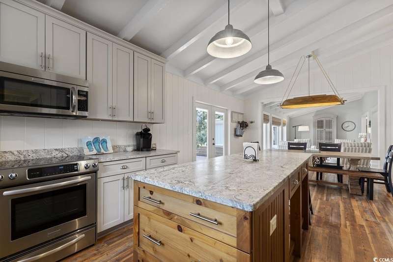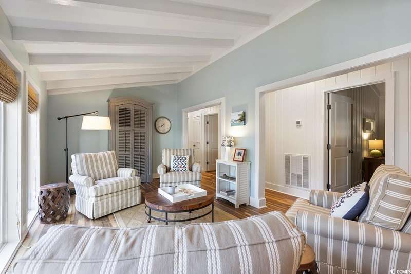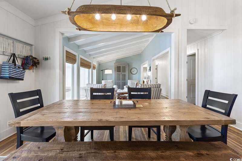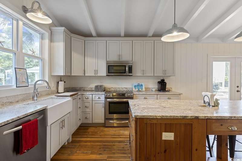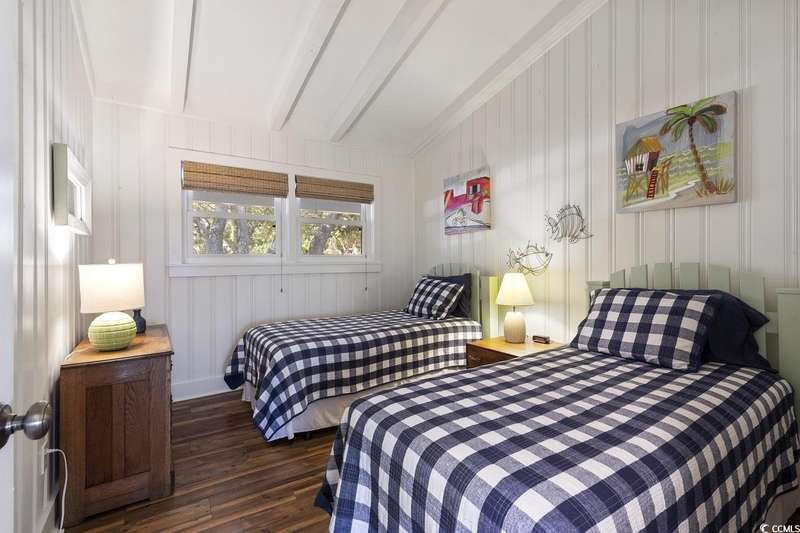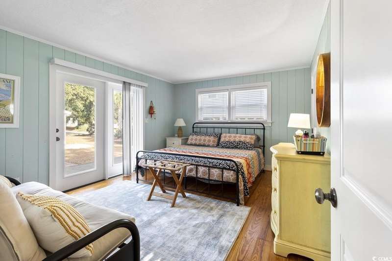 This one-of-a-kind ranch home on a corner lot truly stands out in the neighborhood offering the ease of single-story living with a stylish open floor plan and vaulted ceilings. Renovated and being sold furnished (with just a few exceptions), it’s move-in ready and as welcoming as they come. The beautifully landscaped front yard creates a wonderful first impression with live oaks providing welcome shade, while the spacious back deck and patio make the perfect setting for relaxing or entertaining. A detached garage provides plenty of extra storage and includes room for your golf cart—already included with the home! Adding to its appeal, a separate guest house offers the perfect spot for visiting friends and family or an excellent rental opportunity. Best of all, this unique property is just a short walk to the beach, making it an ideal coastal retreat.