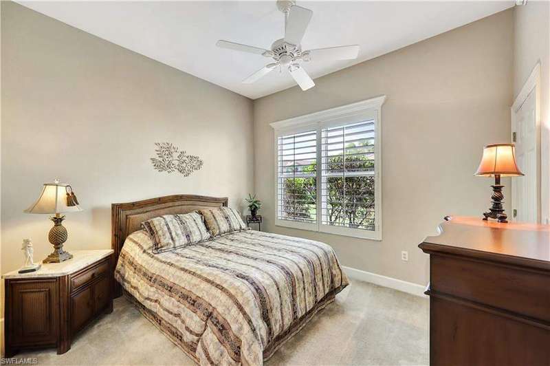 Discover all the comforts of a well-appointed home in this 3-bedroom, 3-bath Coach Home complete with high-end furnishings and thoughtful finishes throughout. Step inside to find upgrades including elegant plantation shutters, tray ceilings, a spacious open floor plan, and a kitchen designed for entertainment and family gatherings. The Primary Suite is a true escape featuring a step-in shower w/ separate tub, private water closet, dual sinks, and an enormous walk-in closet. The inviting screened lanai offers stunning views of the golf course and pond and is ideal for morning coffee or quiet afternoons. The Quarry is an amenity-rich, gated lakefront community with over 500 acres of navigable lakes to enjoy boating and fishing activities. A newly renovated Beach Club features 2 restaurant venues including poolside food and drink service, and al fresco dining overlooking Stone Lake. The Wellness Center offers tennis, pickleball, bocce, exercise studios and meeting rooms along with a full-time activities director to keep you engaged. Private golf membership is available making The Quarry a perfect fit for everyone. Embrace the lifestyle you've always wanted in this vibrant community.