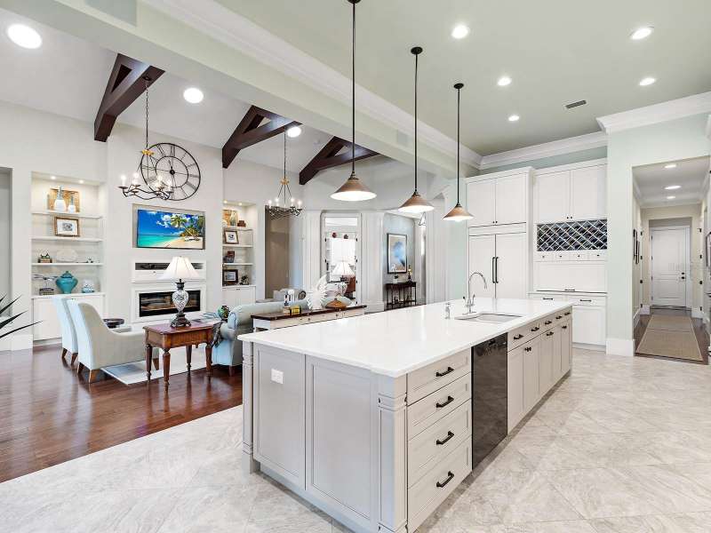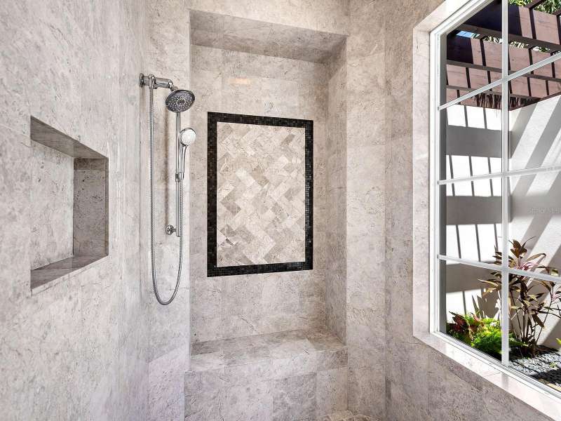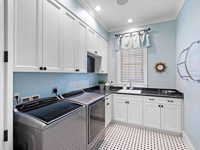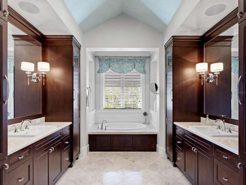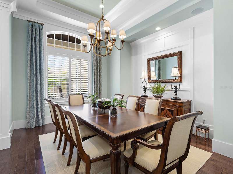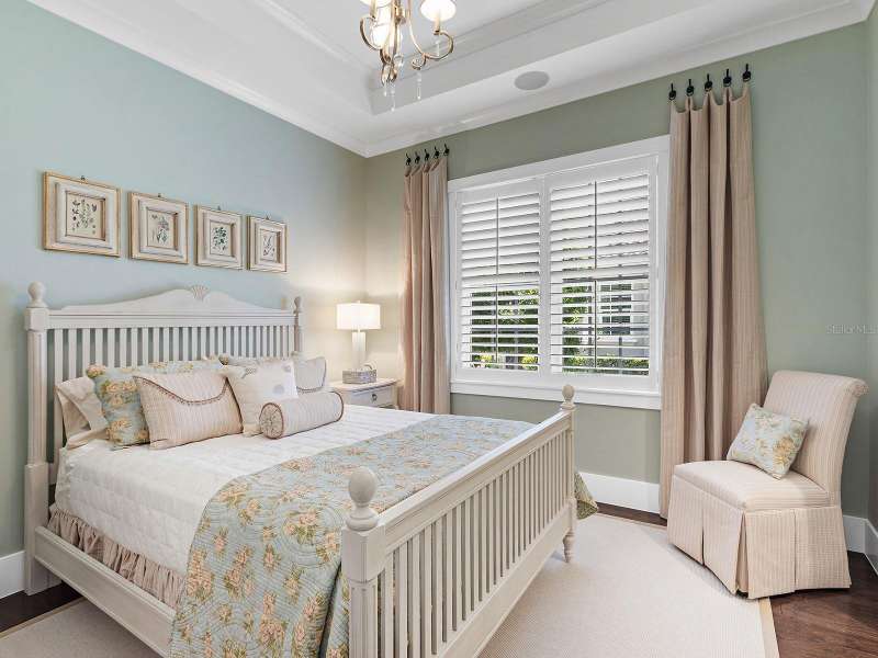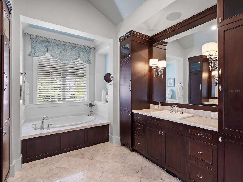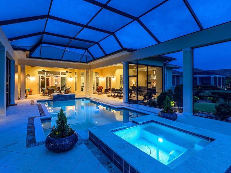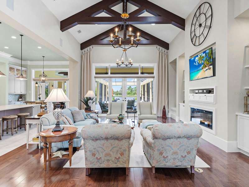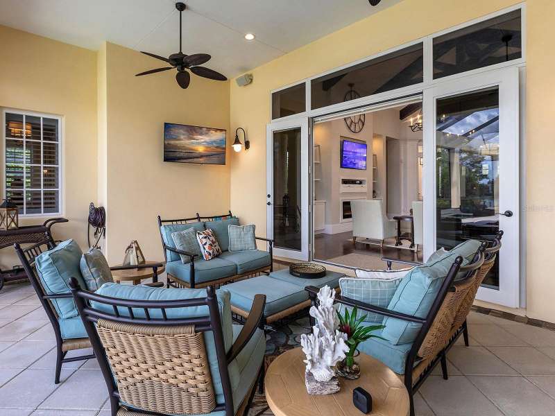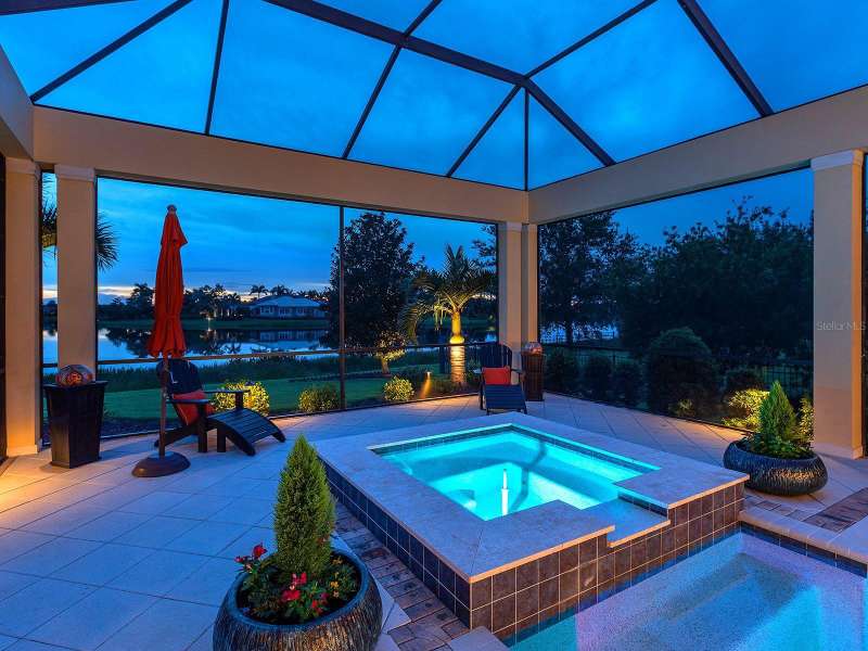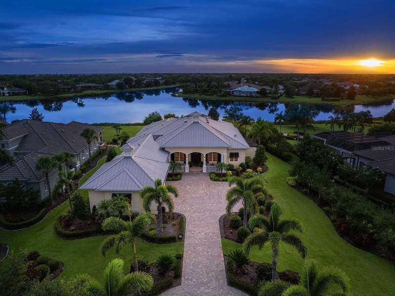 With stunning sunset views over the sparkling lake, this picture-perfect home in The Lake Club is truly a rare find in all of Lakewood Ranch! Built in 2016 is this completely custom home built by award-winning Nutter Custom Construction. Every detail in this residence has been meticulously selected for a luxurious yet functional lifestyle. Situated on 0.76 acres, this spacious lot affords you additional privacy, manicured landscaping, and over 80 feet of lakefront. In addition to the opulent upgrades inside, this home is outfitted with a rare METAL ROOF that offers up to 50 years of life, and IMPACT windows and doors throughout. From the spacious paver driveway surrounded by beautiful landscaping, you’re welcomed home to a charming front porch entry with Caribbean box railing and mahogany front door. The foyer invites you in with volume ceiling and custom painted wall to the open floor plan. The grand great room is truly the heart of the home and showcases vaulted ceilings with hand-stained wood beams, cozy electric fireplace, engineered hardwood flooring, custom built-in shelving, solar tubes for an abundance of natural light, and impact rated French doors to the lanai. Outdoors you’ll be immediately impressed with the western views of the lake, spacious gathering areas, custom ceilings, and colonnade screen enclosure. The heated pool and spa offers the ideal place to gather at one end around the gas firepit; or relax in the spa at the other end lakeside. Enjoy dinners alfresco from the outdoor kitchen expertly equipped with a Lynx grill, beverage refrigerator, and built-in ice chest cooler. Inside the chef will adore preparing meals in the gourmet kitchen complete with solid wood cabinetry including appliance bay and wine rack, quartz counters, central island with seating, and walk-in pantry with shelving. The high-end appliance suite includes a Jenn-Air paneled refrigerator, Wolf built-in microwave and wall oven, KitchenAid warming drawer, Miele dishwasher, and Bosch induction cooktop with flex bridge burners that make cooking a breeze. Dine in the formal dining room with designer chandelier, or in the casual dinette with built-in cabinetry. When you’re ready to end the day in relaxation, retreat to the primary suite with vaulted ceiling, dual custom walk-in closets, separate seating area, and private lanai with remote-controlled shades. Your primary bath is a sanctuary with dual split vanities, limestone tile, walk-in shower with bench, soaking tub, and private courtyard. Guests will enjoy their own luxe accommodations in the second primary bedroom with private en-suite bathroom and walk-in closet that is ideal for long-term guests or could be used as a bonus room; or the two additional guest bedrooms with walk-in closets and jack & jill bathroom. Rounding out this one-of-a-kind residence is a study with custom built-in shelving and desk, laundry room with plentiful storage, mudroom entry with 3 closets, and guest powder bathroom. Don’t forget about the oversized 3-car garage with fans to keep cool, custom storage cabinetry and workbench, and air-conditioned Florida basement perfect for storage. The Lake Club is an exclusive premier, gated community with a Grande Clubhouse, restaurant, pool, tennis, pickleball and more.