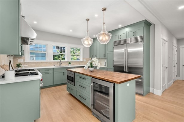 Stunning remodeled home in desirable West Medford! Located prominently at the corner of Grove St. and High St. this home features 5 bedrooms and 4.5 bathrooms. Loads of charming features from the early 20th century blend seamlessly with modern upgrades. Brand new gourmet kitchen with custom cabinetry, butcher block top island, and top end appliances, including Wolf Range and Sub Zero refrigerator. The second floor features a primary bedroom with a walkout balcony, a luxurious en-suite wet bath, and a large, custom built, walk-in closet. Two more generously sized bedrooms and an additional full bath. The third level features 2 additional bedrooms and a full bath with a double vanity. High ceilings throughout the house, including the 3rd floor! Fully finished basement with large family room, wine storage and a full bath. Great spaces for entertaining. Easy access to 93/Boston, West Medford T station, restaurants and shops!