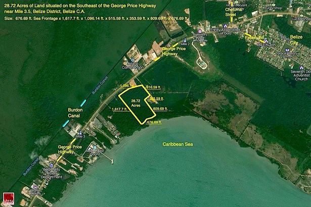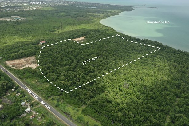 Welcome to an extraordinary opportunity to develop 28.72 acres of commercial/ residential land, bordered by the George Price Highway to the Caribbean Sea, just a 15-minute drive to Old Belize (Beach, Marina Museum) and Belize City, less than 1 mile from the Chetumal Street Bridge, offering a blend of convenience, visibility and accessibility.This seafront property offers dimensions of 1096.14 ft x 353.59 ft x 809.69 ft x 66 ft x 676.69 ft. x 1617.7 ft. and is best accessed by an all-weather road. The property is in its pristine, forested conditions and ready for future development. Tract of land is well-suited for a grand residential estate, mix-use or commercial development and is perfectly positioned within the environs of many commercial / Industrial properties. The acreage has access to all utilities which include, electricity, potable water, cable and wifi services.Due to the property’s strategic location and expansive area, tract of land offers a superb and excellent investment/development possibility. This versatile piece of land offers unparalleled development potential and being transformed into a lucrative project along the highway. George Price Highway is a major thoroughfare experiencing exponential growth, continuous vehicular and foot traffic, perfect for those looking for a future investment.Property is a 15-minute drive to Central American Boulevard, well-established businesses, gas stations, supermarket, market essentials, shops and services, etc.Please let me know if you have any additional questions. I would be glad to answer them and set up a private showing on this property!