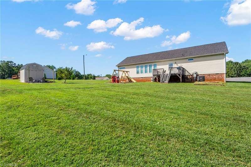 Welcome to peaceful country living! Nestled on just over an acre, this charming 3 bedroom, 2 bath home offers space and comfort in a quiet rural setting. Inside, you'll find a spacious layout with generously sized bedrooms, each featuring its own walk-in closet. The kitchen is bright and functional, complete with white cabinetry, stainless steel appliances, and plenty of room to cook and gather. The primary suite includes a large private bathroom and walk-in closet with custom built-in shelving for optimal organization. Step outside to enjoy the expansive backyard. A deck, storage building, and cozy fire pit area make the outdoor space both functional and inviting. If you're looking for a peaceful retreat from the city, this property offers the best of country charm with modern comforts.