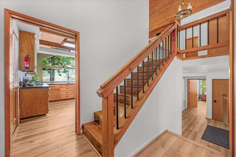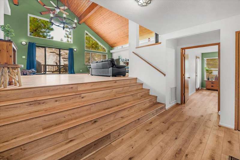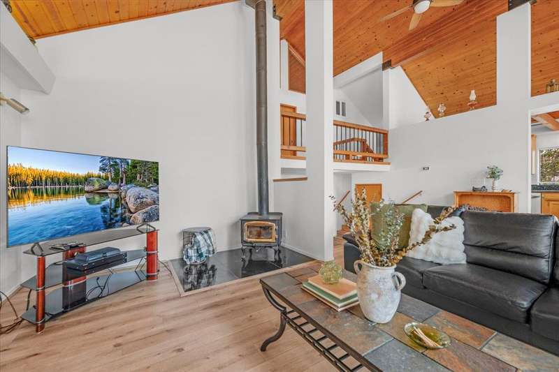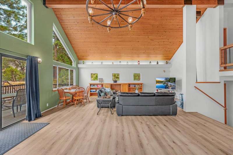 Escape to the Mountains! This spacious 4-bedroom, 2-bath multi-level cabin in beautiful Shaver Lake sleeps 13+ and is the perfect retreat for families and groups. The stunning great room features a soaring vaulted ceiling and expansive windows that flood the space with natural light and bring the beauty of the outdoors in. Each of the four bedrooms offers direct access to a private deck ideal for your morning coffee, a good book, or simply soaking in the mountain air. In the winter, a beautiful granite rock behind the property becomes a natural sledding hill, and the adjacent lot purchased by a neighbor with plans to preserve its open space offers even more room for snow play and adventure. Recent upgrades include fresh interior and exterior paint, a brand-new metal roof (2024), and stylish luxury vinyl plank flooring in the main living area.A2-car attached garage ensures convenience and comfort when arriving in any season. Whether you're looking for a cozy getaway or an adventurous basecamp, this cabin delivers comfort, space, and the true mountain experience.Bedroom count and square footage differs from tax records; buyer to verify if important.