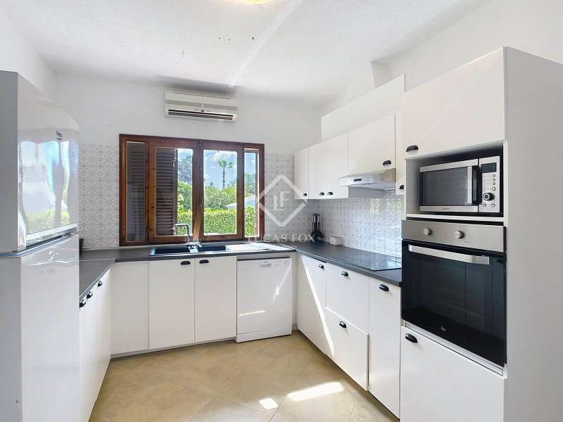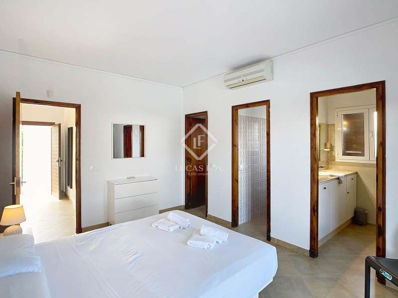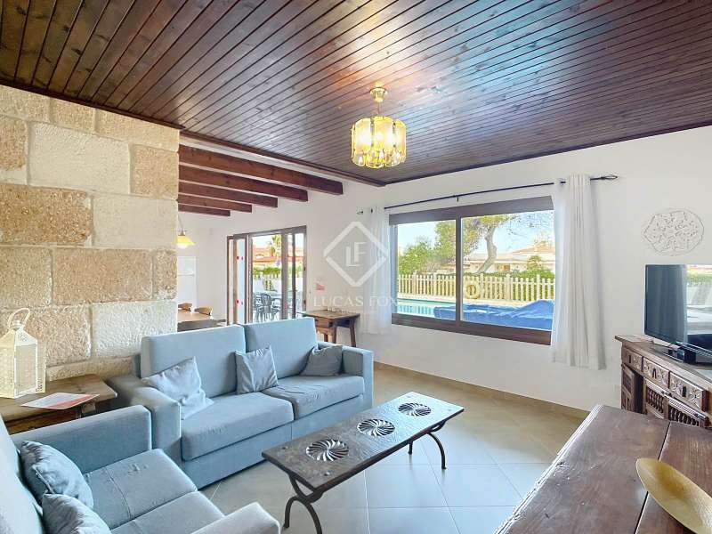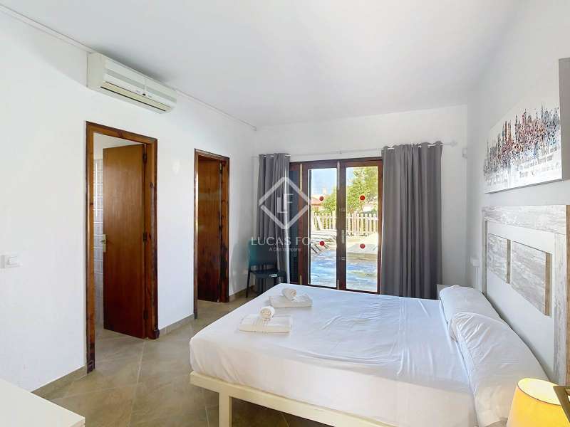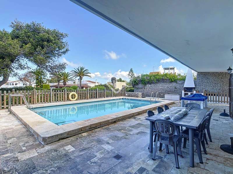 Lucas Fox presents this 264 m² villa on a spacious 1,379 m² plot in the quiet development of Cala Blanca, in the municipality of Ciutadella de Menorca. The villa is spread over a single floor. Upon entering, we are welcomed by a spacious entrance hall/ hall with a guest toilet, the main bedroom with a private bathroom, dressing room, and access to a covered porch. There is a fully equipped renovated kitchen that leads to the dining room and living room, and another spacious dining room/living room with a wood-burning fireplace and access to a covered porch with a 60 m² pool area and barbecue, ideal for enjoying the outdoors and the Mediterranean climate. Through a separate entrance attached to the house , we find a corridor with two bathrooms and four double bedrooms with built-in wardrobes. The house is equipped with hot/cold air conditioning units in all rooms and automatic irrigation. Also from the exterior we access by some stairs to an area used as a storage room. Exterior , at the entrance to the villa, we find the large garage with an exterior pergola area ideal for vehicles or boats and a large garden area. Without a doubt, an ideal property to live in year-round, or spend time with family and/or friends. Contact us for more information or to arrange a visit.