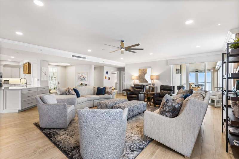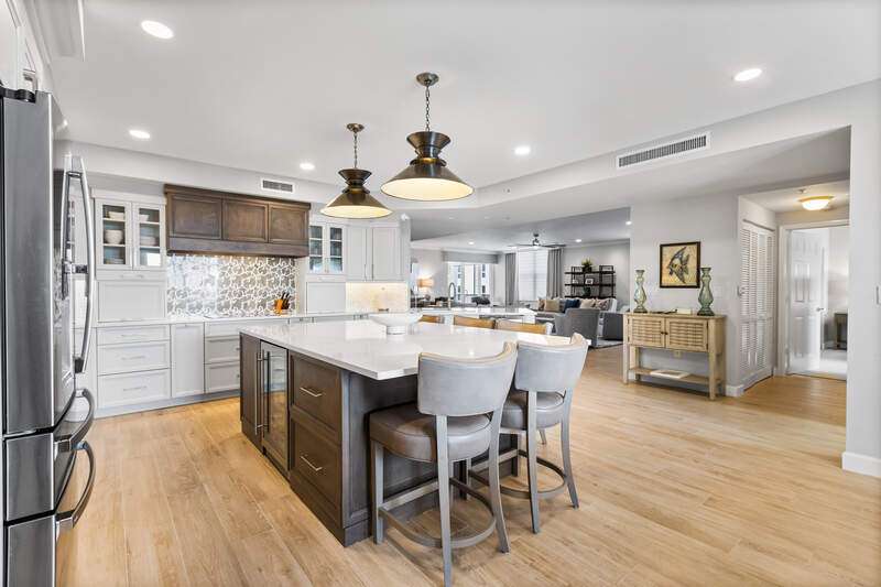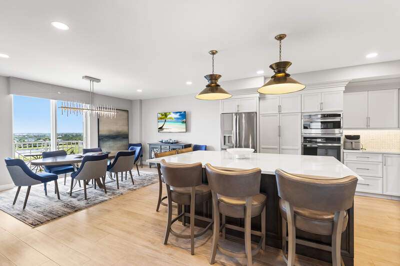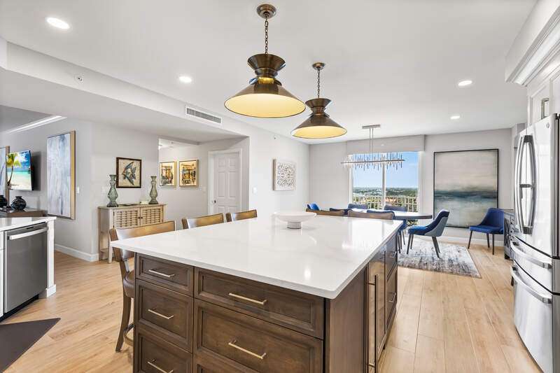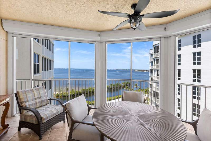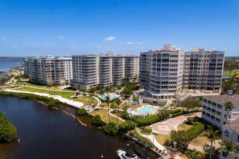 BREATHTAKING VIEWS OF THE RIVER AND DOWNTOWN FORT MYERS ARE YOURS!! RARE OPPORTUNITY - TWO UNDER-BUILDING PARKING SPACES INCLUDED! Perched on the 9th floor of The Shores III, this rarely available Danbury end-unit offers 3 bedrooms, 3 baths, and 2,660 sq. ft. of refined high-rise living. With two elevators serving the unit and two deeded parking spaces, convenience meets exclusivity. Step inside to discover panoramic views of the Caloosahatchee River, golf course, lakes, and even Downtown Fort Myers. The wraparound lanai and multiple private balconies-one off the guest suite and another off the family/dining room-flood the home with natural light and provide unmatched outdoor living space. The remodeled 2022 kitchen is a showpiece, featuring quartz countertops, a massive gathering island, induction cooktop, custom cabinetry with under-cabinet lighting, and sweeping river views. Recent upgrades also include new tile flooring throughout the main living areas and fresh interior paint. The oversized primary suite showcases breathtaking river views, a spa-style bath with soaking tub, walk-in shower, and expansive walk-in closet. A second bedroom features its own ensuite bath and balcony, while the third bedroom sits next to a full bath-perfect for guests or a home office. Additional highlights include: Hurricane roll-down shutters Private storage locker Two deeded under-building parking spots (rarely available!) Shores waterfront pool access LIMITED TIME - Sports Membership Joining Fee Reduced by $32,000! Secure a Gulf Harbour Sports Membership for just $20,000 while this promotion lasts. Private memberships are available for golf, tennis, fitness, and more. Gulf Harbour's 186-slip deep-water marina offers slips for purchase or lease-an ideal complement to this luxury lifestyle. Be sure to watch the two videos showcasing the condo and marina!