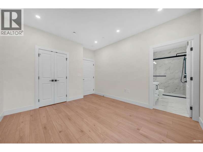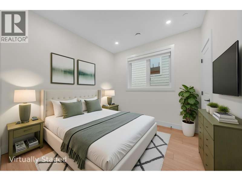 NO STRATA FEE! Modern back-unit home in a brand-new triplex in Joyce-Collingwood. This 2-storey home features 3 spacious bedrooms and 3 full baths, with views on the upper level and lots of natural light throughout. Enjoy a stylish living room with custom TV cabinet, sleek kitchen with S/S appliances and large island, plus A/C, HRV, heat pump, security system, EV-ready parking, and a private fenced backyard. Includes ensuite laundry, ample storage, and 2/5/10 new home warranty. Convenient location near schools, parks, and SkyTrain stations. Built by a reputable builder. Easy to show! OPEN HOUSE Nov. 2nd 3:30-5PM (id:58403)