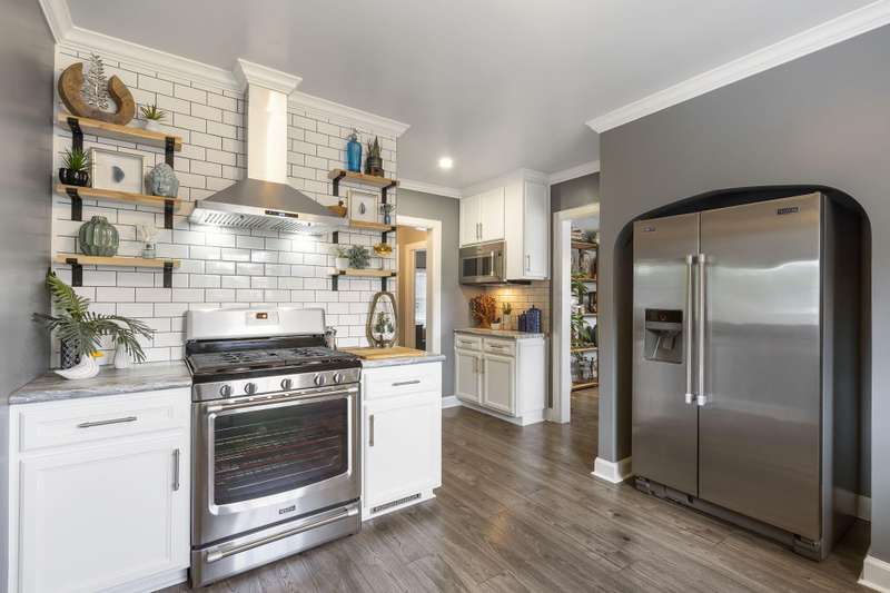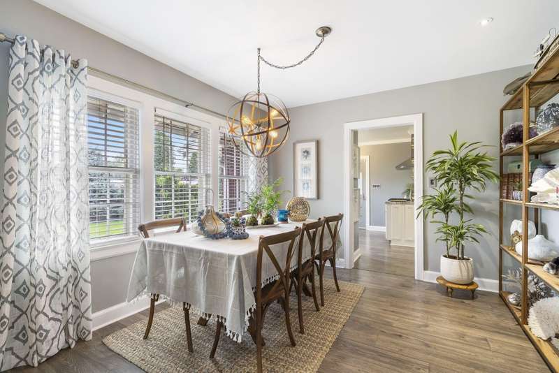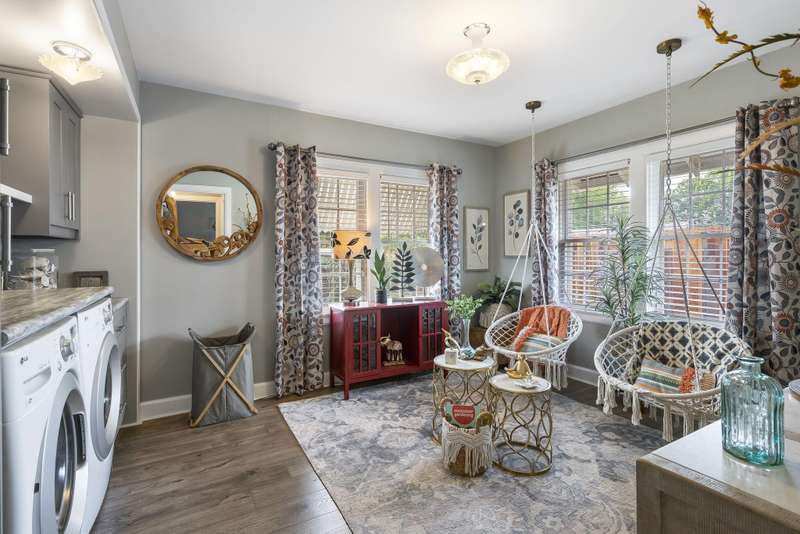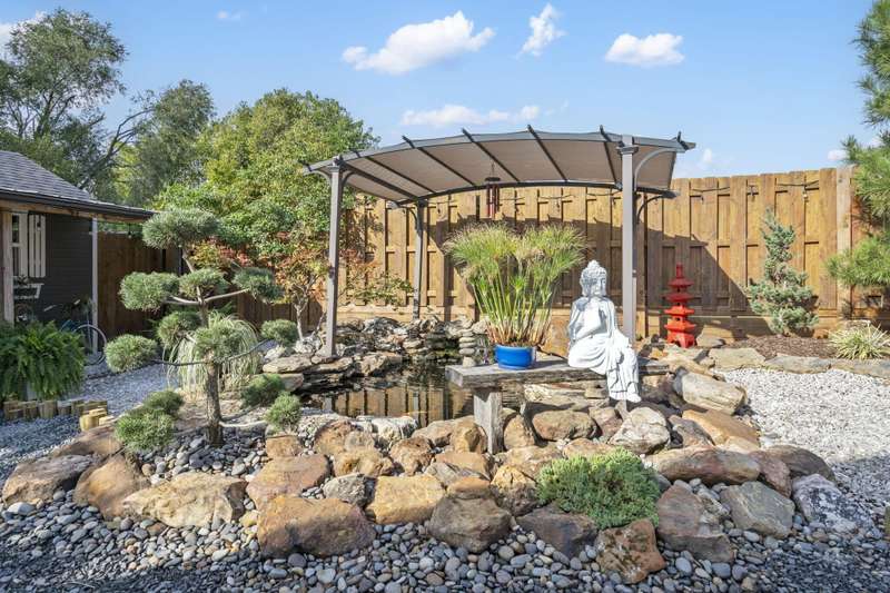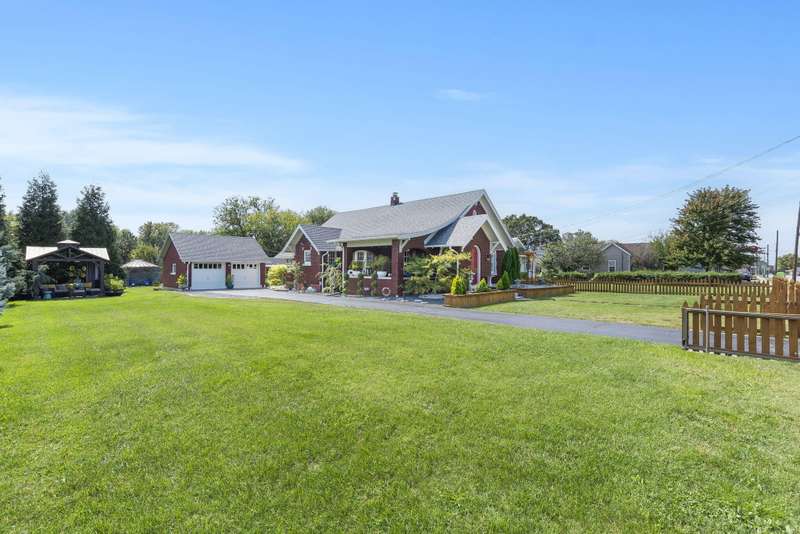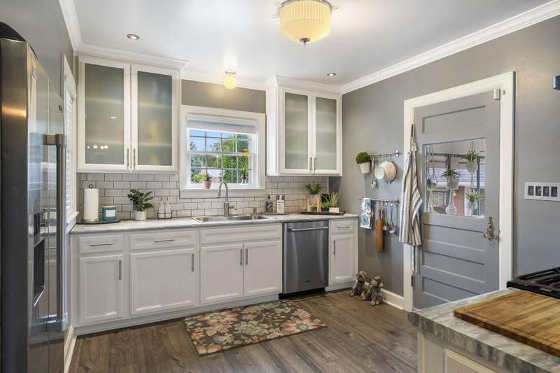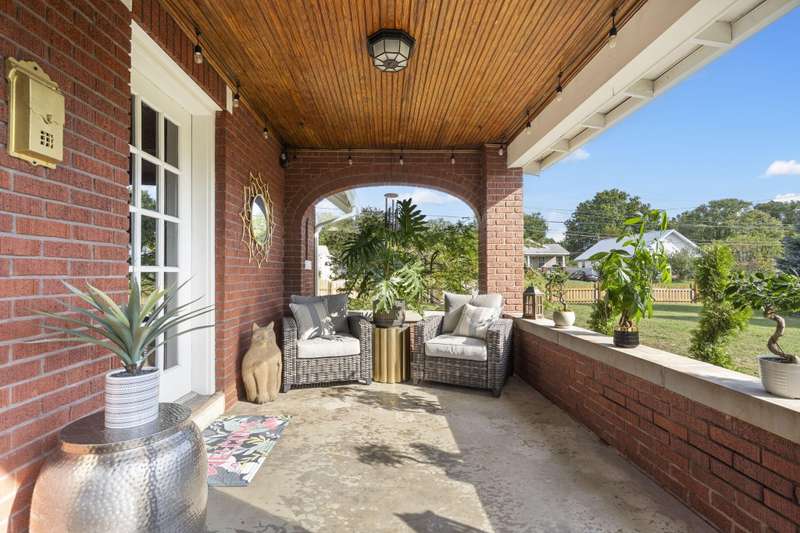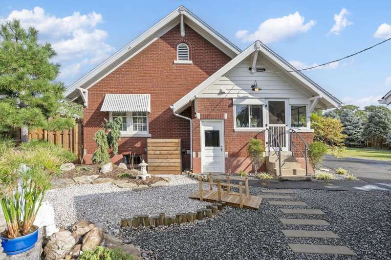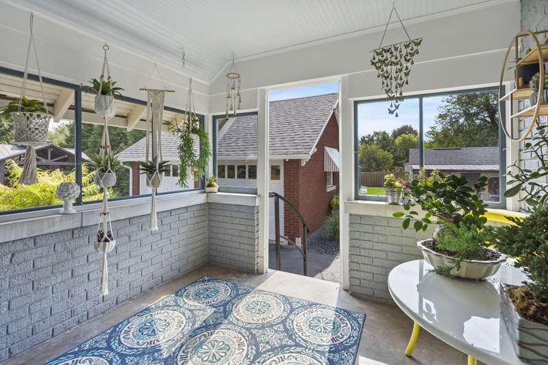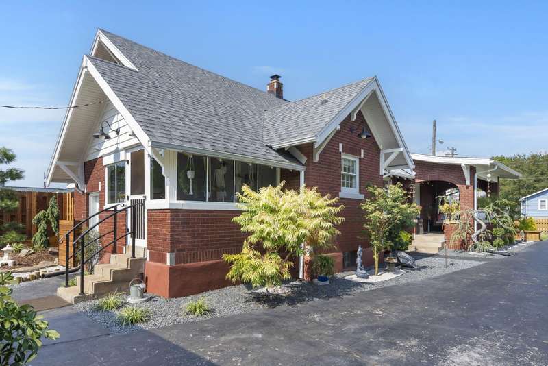 This meticulously designed home has an unparalleled blend of aesthetic and functionality. A rare opportunity, it is zoned commercial in a fantastic location for both a home and business! Exuding charm and character from its picturesque cottage bungalow styling, captivating rooflines, and all-brick exterior. There is an undeniable eye-catching curb appeal. Inside, the home's remodeled interior is an inviting space with refinished original windows, recessed lighting, luxury fixtures, and high-end Pergo flooring. The living room features a beautiful brick fireplace with the adjacent formal dining connected to the kitchen--all with a magazine-worthy makeover. The kitchen has contemporary cabinets, floating shelves, and high-end stainless steel appliances including a chef's must-have gas oven range. You'll also find a lovely screened-in porch entry leading from the home's matching detatched, 2-car garage equipped with electricity and heat. The master bedroom is spacious with large windows, while the second bedroom serves as a multifunctional laundry room with built-in cabinets and dressers with washer and dryer hookups. The bathroom exudes a French-inspired finish, with tile floors, porcelain pedestal sink, and floating shelves. The expansive partially finished basement has both an interior and separate exterior entrance. A second covered front porch is located by the living room, offering breathtaking views of the impressive landscaping in the spacious yard zoned with multiple outdoor living areas: the spacious gazebo on raised tile, charming pergola on stone pavers, and a peaceful water feature nestled in a dazzling rock garden beneath a Florence soft-top pergola. The backyard has privacy fencing while the front yard is accented by a lovely scalloped picket fence. A greenhouse completes this gardener's delight! This rare home has too many features to list; call for all the details!
