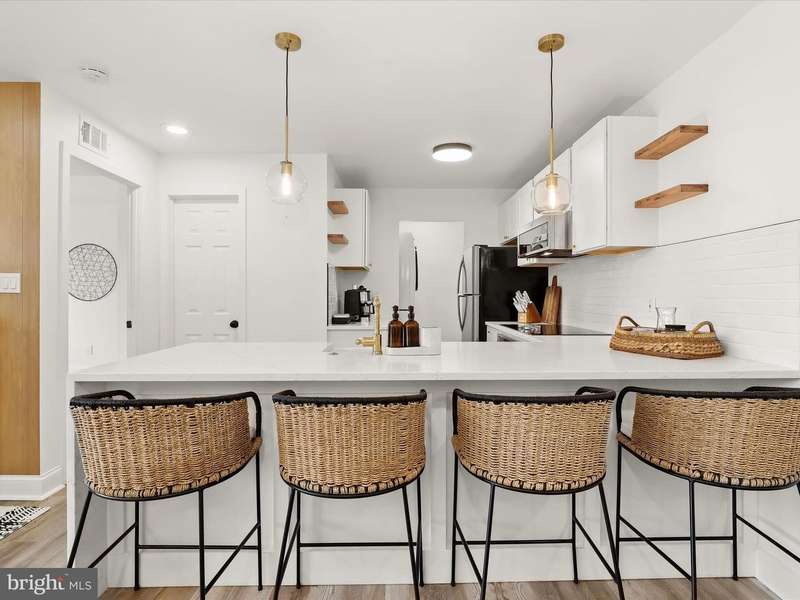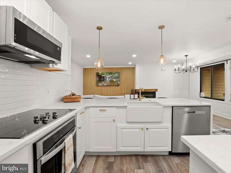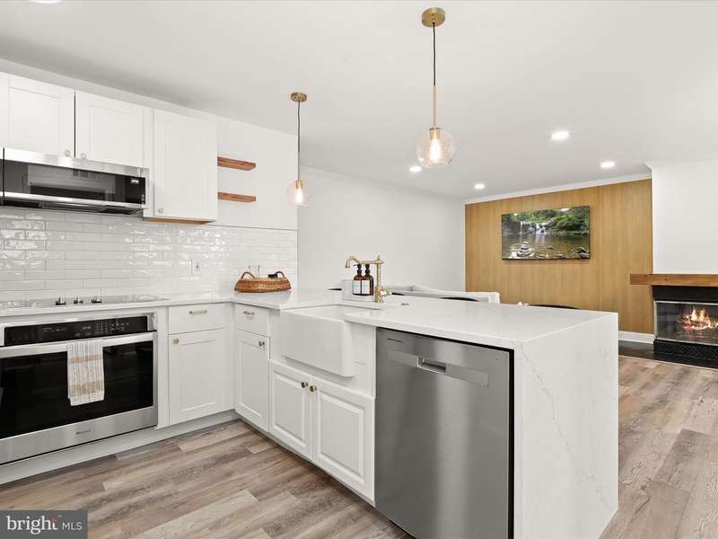 Welcome home to this fully renovated two-level condo offering two bedrooms and two bathrooms in the desirable Christopher Court Condominiums of Montgomery Village. As you arrive, a spacious front porch provides the perfect spot to relax outdoors, complete with a convenient storage closet. Step inside to an open-concept main level showcasing modern finishes, including luxury vinyl plank flooring, recessed lighting, and a light neutral color palette. The living and dining areas feature elegant crown molding, a cozy wood-burning fireplace, and an accent wall for added character. The kitchen is beautifully updated with stainless steel appliances, quartz countertops, a tile backsplash, farmhouse sink, and floating wood shelves. Off the kitchen, a walk-in pantry offers additional storage space, along with a full-sized stacked washer and dryer. The main level also includes a second bedroom and a full bathroom with a frameless walk-in shower. Upstairs, the top level is dedicated to the primary bedroom suite with hardwood floors, two closets with organizers, and a private bathroom featuring a tub-shower combination. Completely updated throughout in the last two years, including a new water heater and HVAC system. Enjoy the community's outdoor pool, tennis courts and picnic areas across the street. Montgomery Village provides an abundance of recreational amenities, including community centers, playgrounds, picnic pavilions, ponds, lakes, walking paths, athletic courts and fields, pools, social events and so much more! Centrally located close to Montgomery Village Shopping Center, this home offers easy access to a wide variety of shopping, dining, and entertainment. Commuting is a breeze with major highways like I-270, ICC 200, and MD 355 nearby, as well as public transportation options, including RideOn bus service and the Shady Grove Metro station just 15 minutes away.