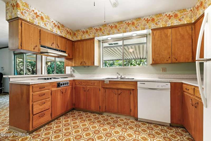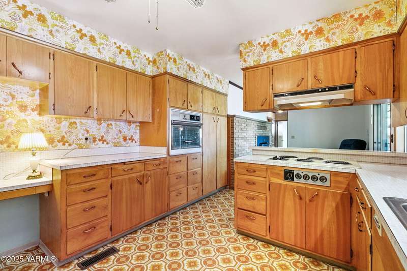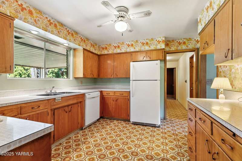 Lovingly maintained and full of mid-century character, this 3-bedroom, 2-bath brick home sits on a quiet dead-end street with beautiful landscaping and sweeping views. Built in 1964, it's like stepping into a well-preserved moment in time, complete with original details and decades of care. On the main floor, you'll find all three bedrooms, both bathrooms, a dedicated office/den, and the spacious kitchen and living room. The kitchen offers plenty of cabinet space and beautiful views of Yakima and the mountains, while the living room features large windows and a wood-burning fireplace. The basement adds even more flexibility, with two non-conforming rooms, a cozy wood stove, and a shop area perfect for projects or storage. Whether you're drawn to its retro charm or excited about its potential, this home is a rare opportunity to own something truly special.