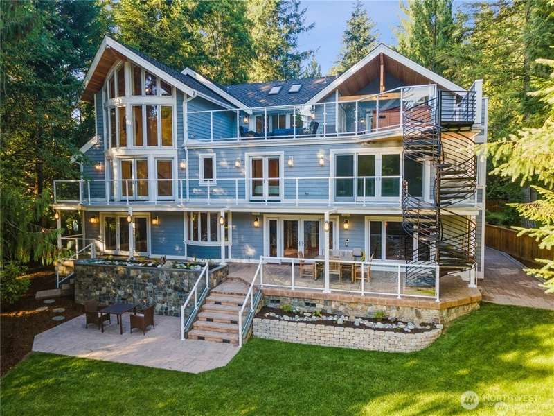 This Luxurious Lake Marcel home has 3 stories all with beautiful lake views situated on 135' of waterfront & sand beach. Incredible Construction, Impeccable millwork, marble/granite & woodwork featured throughout. Grand Formal Entertaining areas. Chef's kitchen w/Dacor, Sub Zero. Family Room w/Elegant shelving accented by F/P. Primary Suite boasts a 2 story bow/bay wall of windows, gorgeous, vaulted wood ceiling. Comfortable sitting room w/fireplace/tv. One of a kind wet room for the spa experience! Separate wing has it all with 2bed/2baths & large bonus room. Third floor, Executive office/boardroom. Exercise Rm, Huge Media Room opens to 700sq' entertaining deck w/hot tub, bathroom, kitchen nook & unobstructed lake views.EFF BUILD DATE 2008