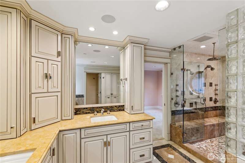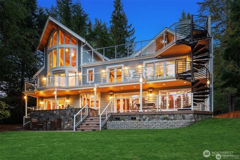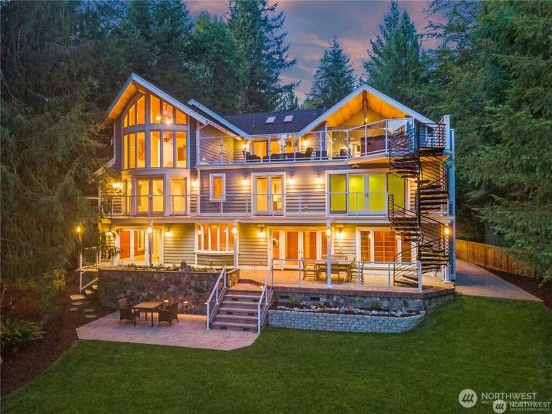 This Luxurious Lake Marcel home has 3 stories all with beautiful lake views situated on 135' of waterfront & sand beach. Incredible Construction, Impeccable millwork, use of marble/granite & woodwork featured throughout. Grand Formal Entertaining areas. Chef's kitchen w/Dacor, Sub Zero. Family Room with Elegant shelving accented by F/P. Primary Suite boasts a 2 story bow/bay wall of windows, gorgeous, vaulted wood ceiling. Comfortable sitting room w/fireplace/tv. One of a kind wet room for the spa experience! Separate wing has it all with 2bed/2baths & large bonus room. Third floor, Executive office, boardroom ready! Exercise Rm, Huge Media Room opens to 700sq' entertaining deck w/hot tub, bathroom, kitchen nook & unobstructed lake views.