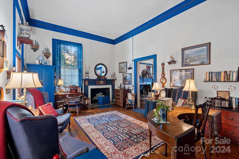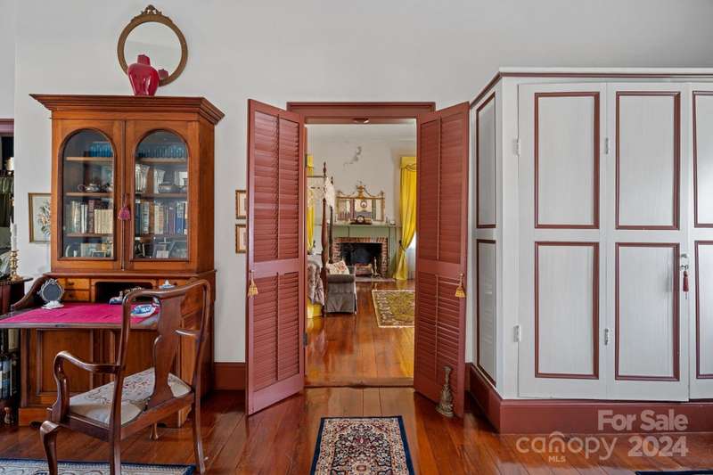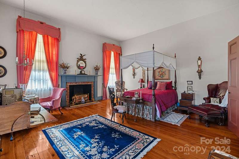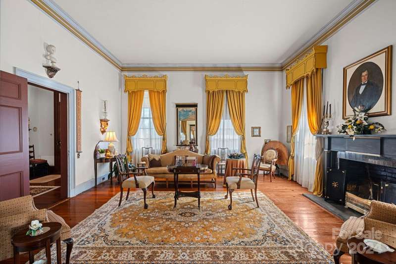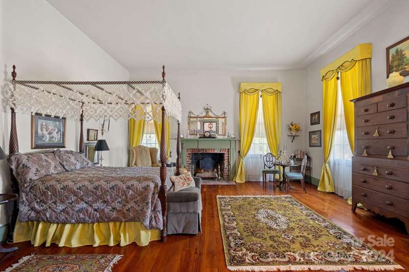 This historic home is truly a treasure! A National Register landmark, the Historic Mount Mourne Plantation, c.1836 holds significant historical & social provenance in southern Iredell Co. Built in the transitional Federal Greek Revival style with a hip-roof portico & fluted Doric columns, this 2-story home is situated on over 3 sprawling acres with private utilities. Unmatched craftsmanship and materials like heart pine floors, lath & plaster walls, 14-ft ceilings, pristine custom woodwork & mantelpieces. Lovingly restored & maintained, modern amenities include a blue-and-white chinoiserie kitchen with two sinks, gas cooktop, arched niches, modern appliances & built-in banquettes. The luxurious bathroom features a jetted soaking tub, tiled Grecian shower & a private dressing room with built-in armoires & a gas log fireplace! A full walk-up attic offers fabulous storage & future potential. The 3.45-acre property is level with fruit trees, native plantings & a log barn outbuilding.