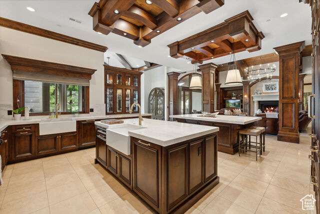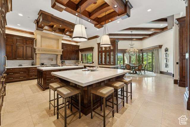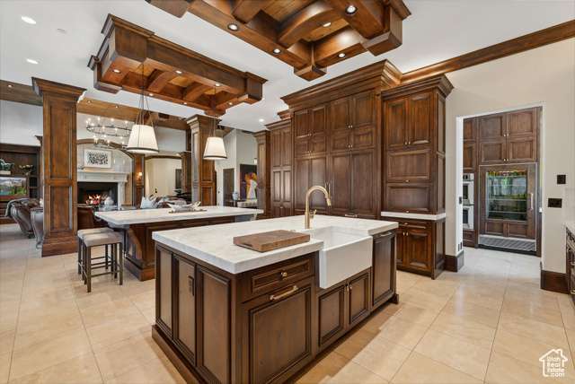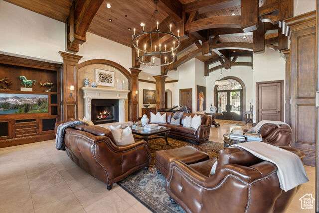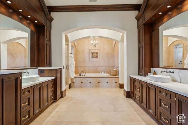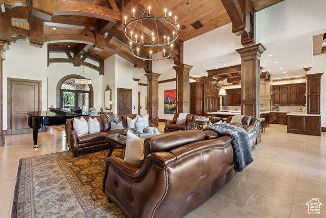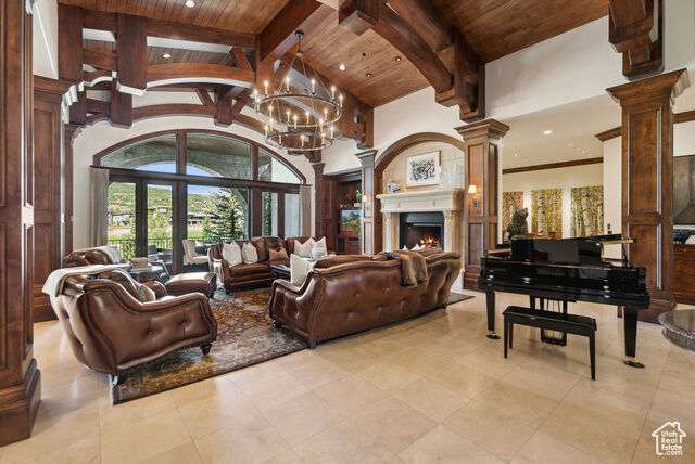 Timeless elegance paired with remarkable comfort is evident throughout this stunning custom residence located in the highly exclusive, gated community of Glenwild. Recently enhanced with luxurious upgrades in 2022, this property offers the perfect blend of established grandeur and modern refinement. Perched above the 6th fairway of Utah's #1 rated golf course and featuring breathtaking ski resort and golf course views, there is absolutely nothing this immaculate estate leaves to be desired. Step inside to discover a meticulously designed layout that caters to both grand entertaining and intimate family gatherings. The main level showcases expansive living areas adorned with smooth alder wood beams, striking mantles, and dramatic vaulted ceilings. An enviable open kitchen, now boasting new marble slabs, flows effortlessly into a fully updated butler's pantry. The dining area, enveloped by glass doors, opens to the elements, blurring the line between indoor luxury and outdoor splendor. The secluded Northwest wing of the home features the primary bedroom and it's own office which offers access to the spacious covered dec. The primary bedroom boasts its own private deck, a fireplace, large walk in closet, and a spacious en-suite bathroom where a grand bathtub takes center stage. A separate guest suite, also with its own fireplace, and en suite bathroom complete the main level's living arrangemnts. In addition to the office the main level is also adorned with an elegant library adding to the timeless nature and sophistication of the home. Descend via staircase or elevator to the lower level, where you'll find three additional private en-suite bedrooms and a potential fourth bedroom currently serving as a state-of-the-art workout room with a sauna. The expansive downstairs living room, featuring a custom bar, sets the stage for unforgettable entertaining. An unmatched all-brick wine cellar, a timeless movie theater, and a new gun vault further elevate the home's amenities. Step outside to a world of outdoor living perfection. Stone archways frame exquisite gathering areas centered around custom fire pits, offering golf course views through mature pines and aspens. A peaceful water feature and sculpted retaining walls line the heated brick paved drive, while newly updated landscaping adds to the property's allure.The crown jewel of the outdoor space is the newly added custom expansive outdoor spa, offering dramatic ski resort views the perfect spot to unwind after a day on the slopes or a round on the golf course. This rare opportunity to acquire a magnificent estate in Glenwild the only gated golf course community in the Park City school district offers an endless adventure right at your doorstep. HOA amenities include a 24-hour staffed gatehouse, extensive hiking and biking trails, a lifestyle center, sports field, and basketball court. For the golf enthusiast, optional Golf or Social Membership to the Glenwild Golf Club is available by separate agreement. Truly a work of art inside and out, this property stands as a testament to refined living in one of Park City's most coveted communities.
