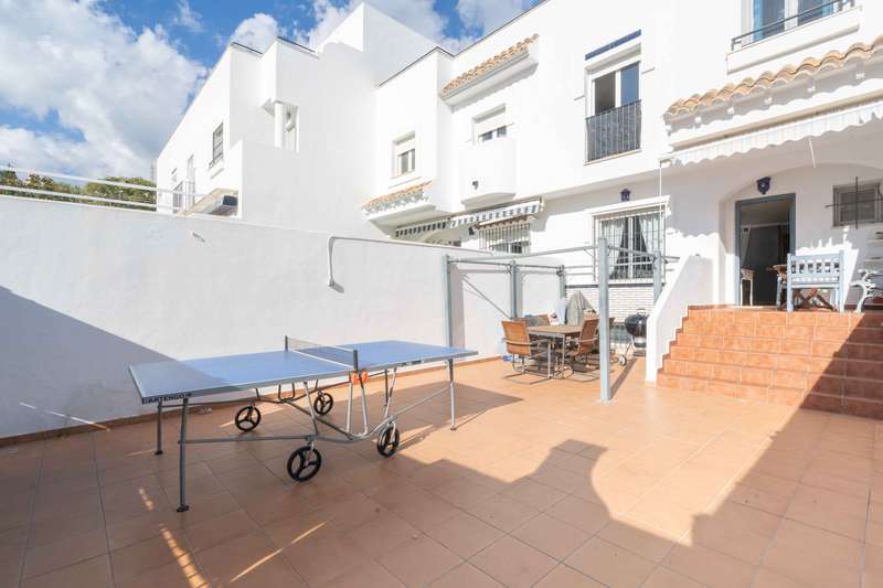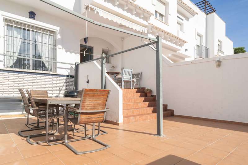 Located in the lower part of Torreblanca del Sol, this spacious townhouse offers the perfect blend of comfort, convenience, and energy efficiency. Just a 5-minute walk from the beach and the train station, it’s ideally situated with all services within easy reach. The property is distributed across several levels and features four generous bedrooms, two full bathrooms, and a guest toilet. The upper floor is equipped with centralized air conditioning, ensuring year-round comfort. In the living room, a ceiling fan adds a natural and refreshing breeze. The independent kitchen is practical and well laid out. At the entrance, there’s a large porch with space for two cars and an additional area ideal for outdoor dining or barbecues. A 57 m² basement offers endless possibilities — whether as a playroom, home gym, studio, or extra storage. At the top of the house, the private solarium with open views is perfect for relaxing and soaking up the sun in peace. One of the standout features is t