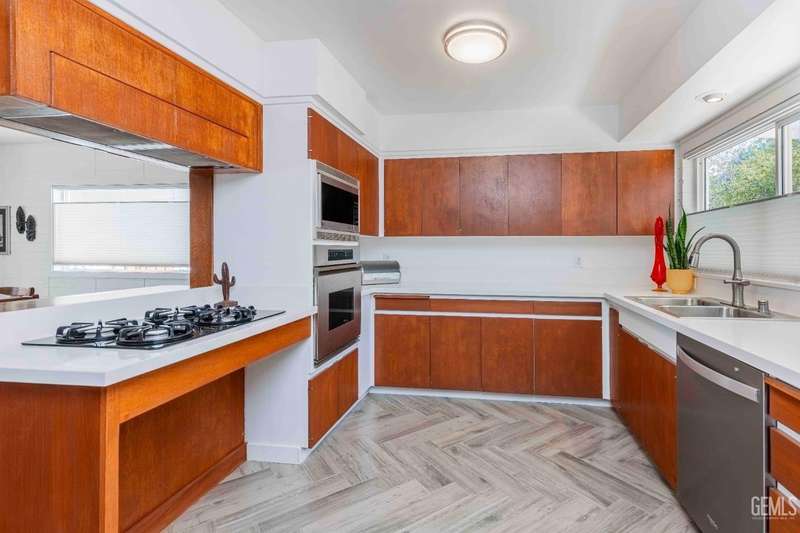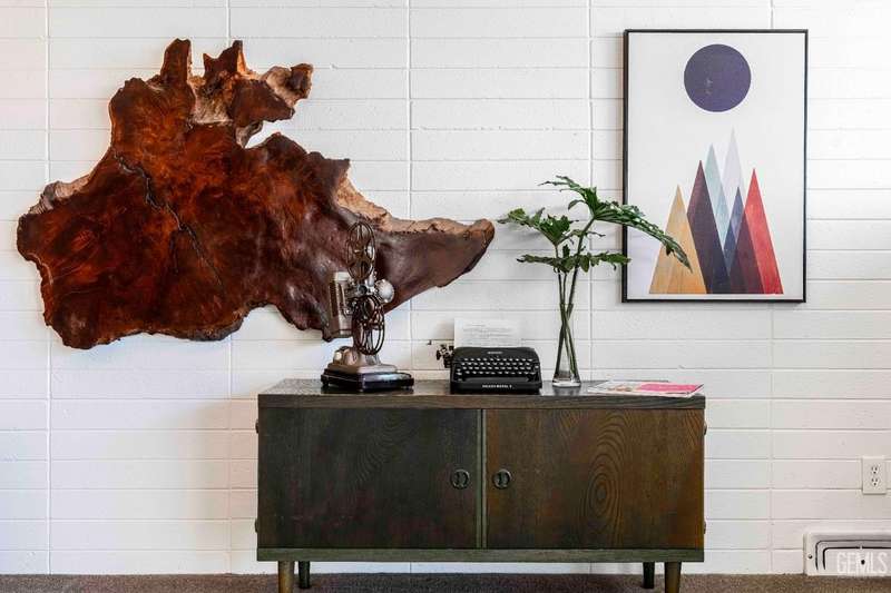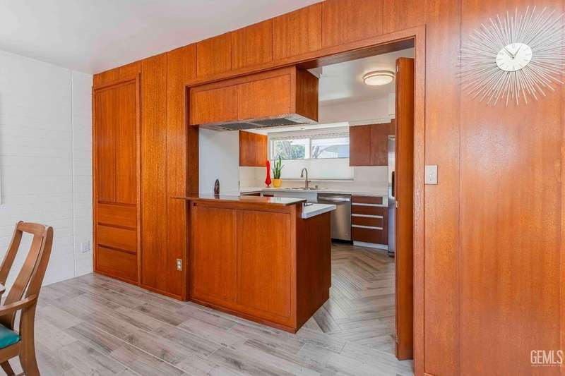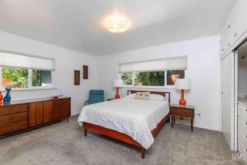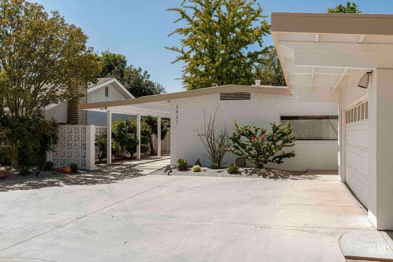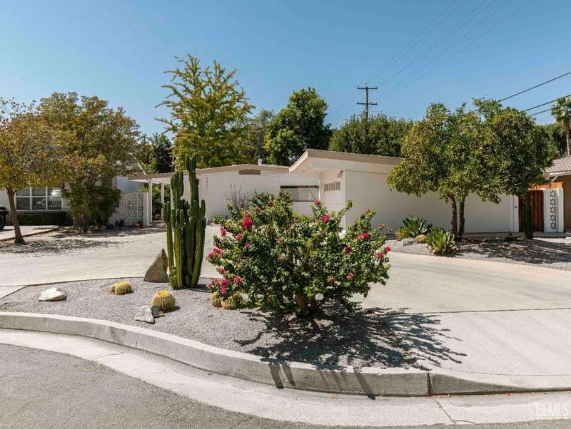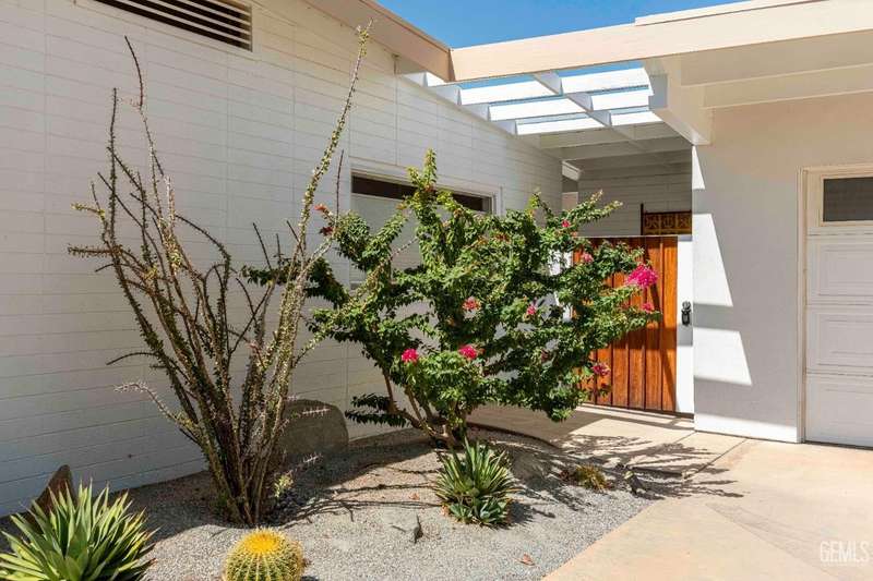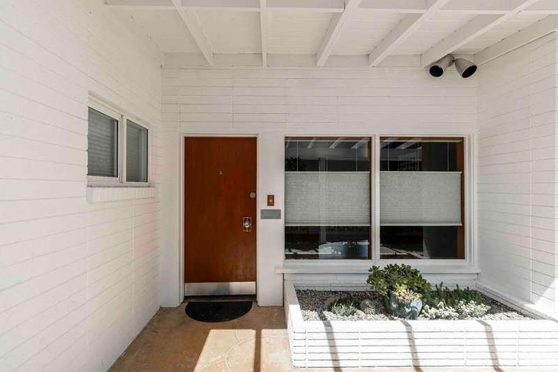 Eichler-inspired mid-century custom home in Westchester's charming downtown neighborhood, ideal as an investment or short-term rental. The original mahogany cabinetry, built-ins, and paneling have been beautifully restored. The light-filled main living area opens to a concrete courtyard, raised planter and above-ground spa. Enjoy a unique pumice stone fireplace, wood-look tile flooring, oversized bedrooms, newer dual-pane windows, and custom window shades. The kitchen features quartz countertops, sleek mahogany cabinets, and stainless-steel appliances. A professionally designed desert landscape blends with mature fruit and deciduous trees. Recent upgrades include a new drip and deep-root irrigation system, custom teak wood gates, and concrete lounge areas. A spacious circular driveway and 2-car garage offer ample parking for guests. (See Realtor Highlights and photos for more details.)