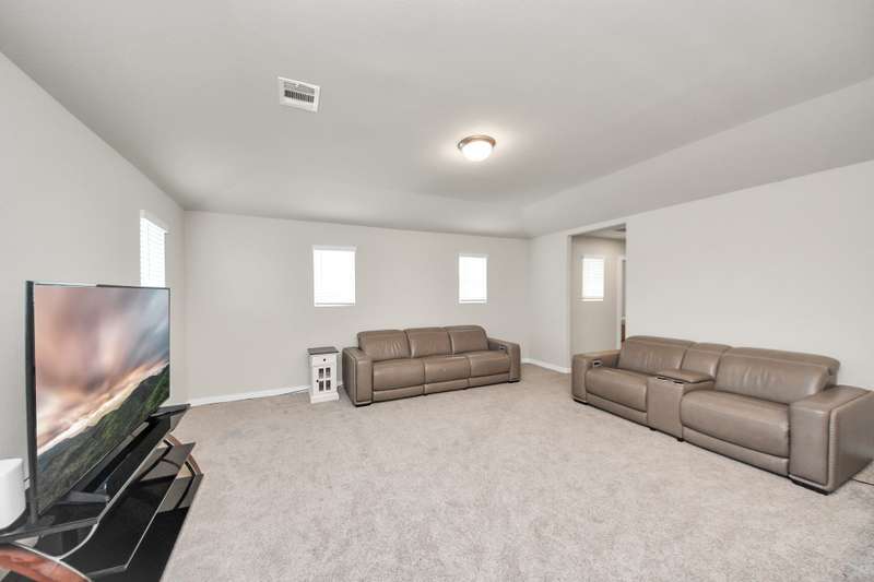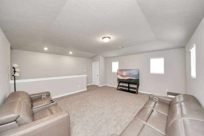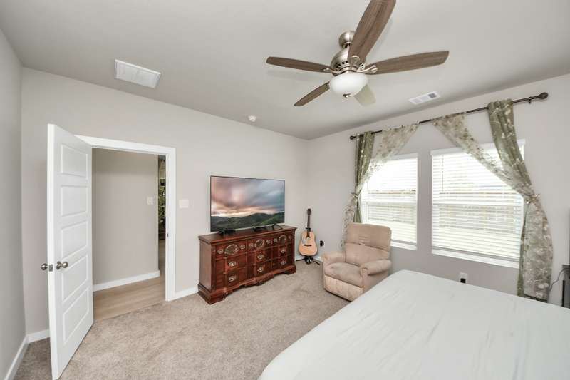 Upgraded 2024 new build in Barbers Hill featuring a three-car driveway, two bedrooms on the first floor, and a whole-home Reverse Osmosis water softener system. Interior upgrades include white cabinetry, quartz countertops, and oak-toned EVP flooring throughout the main level. Washer, dryer, and refrigerator are included. The spacious backyard offers private gated access to picnic pavilion, playground, and walking trails. Zoned to top-rated Barbers Hill ISD and located minutes from Baytown, Mont Belvieu, and the Houston Ship Channel.