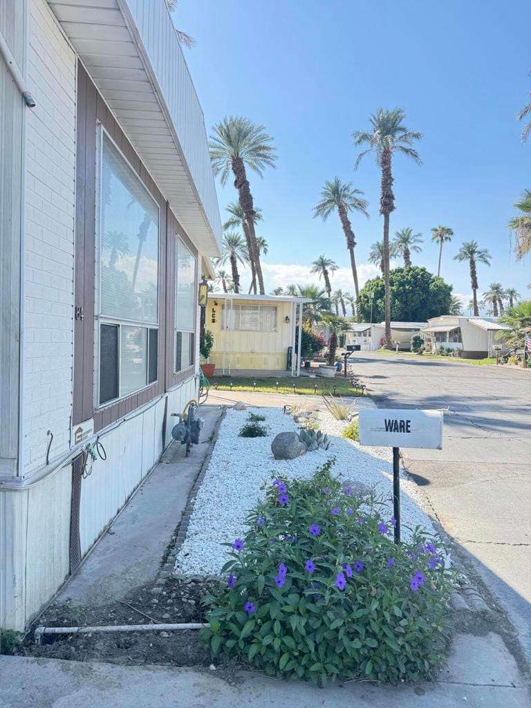 Welcome to a cozy and affordable Manufactured Home in the 55+ Park called Riverdale Estates located near La Quinta & Indio on Hwy 111. This corner lot home features 2 bd, 2 baths with a nice living area. Enjoy the kitchen with plenty cabinetry, laundry area inside. Some updates are completed such as new painting in the interior, carpet on the living area, and bedrooms, a new toilet on guest ba, stairs from both sides. Seminew AC unit, and nice landscaping with gravel at front, sprinklers to keep the beauty. Community amenities are club house with onsite office, laundry, pool, spa, gated community for security and privacy. The space rent for new owners will be $785.00, includes space, water, sewer, trash, plus electric & gas. Owners' occupants only. Buyers must be approved by the office. Ready to show it! bring your offer! PRICE IMPROVED!