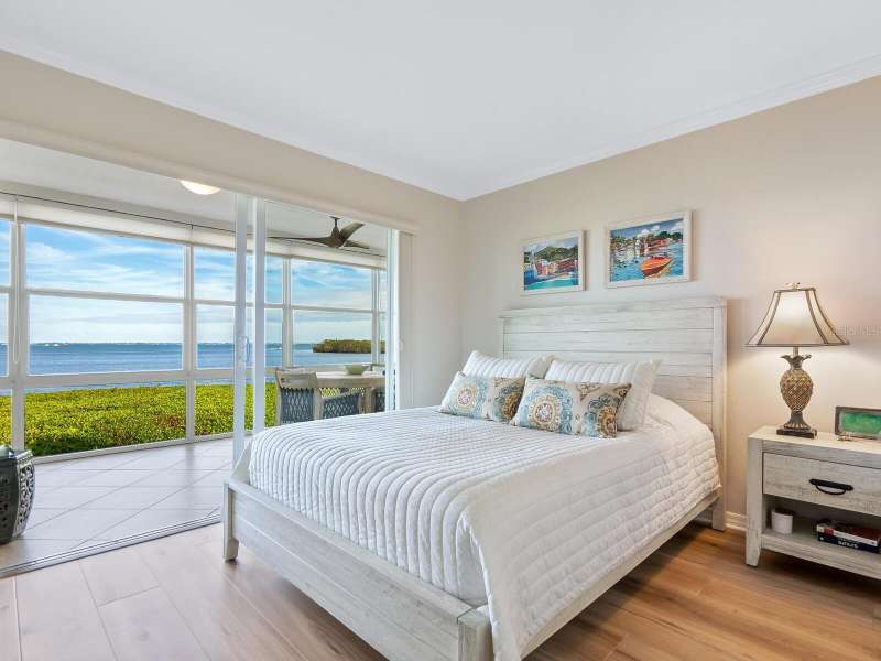 Breathtaking full bay views greet you as you enter this delightful 2 Bedroom 2 bath condo at Windward Bay. The interior has been freshly painted and fully updated with brand new Luxury Vinyl Plank flooring and Moen plumbing fixtures. The Unit boasts granite countertops and Brookhill custom wood cabinets in kitchen and baths, GE Profile double oven, Bosch stacking washer/dryer, Hunter Douglas window treatments, large walk-in master bed closet, hurricane impact windows, and Honeywell WiFi thermostat with humidity control. Enjoy the stunning waterfront views as you dine or relax on your private lanai. Windward Bay is a low density, pet friendly community nestled on 26 acres with 1/2 mile of waterfront trails and 3 adjacent beach accesses. (1deeded,2public). It enjoys a prime mid key location near dining, shopping, and world class entertainment in St Armand's Circle, Sarasota, and Anna Maria Island. The property has many recent updates including new roofs, painting of the mid-rises and extensive landscaping. Its numerous amenities include 2 heated pools, tennis and pickleball courts, 2 marinas with 28 boat slips, kayak racks and launches, covered parking, grills, firepits, and seating areas throughout, and a clubhouse with kitchen, meeting room, fitness center, 2 saunas, and a library. One of the very few units at Windward Bay with ALL of its assessments having been fully paid, including the 15 year Community Capital Improvement and the 30 year Longboat Key undergrounding. For added security, the State of Florida Milestone Inspection on all buildings is complete and Windward Bay is certified for an additional 10 years. Whether your're considering a getaway, a new home, or a rental property, don't miss this great opportunity to own your piece of paradise.