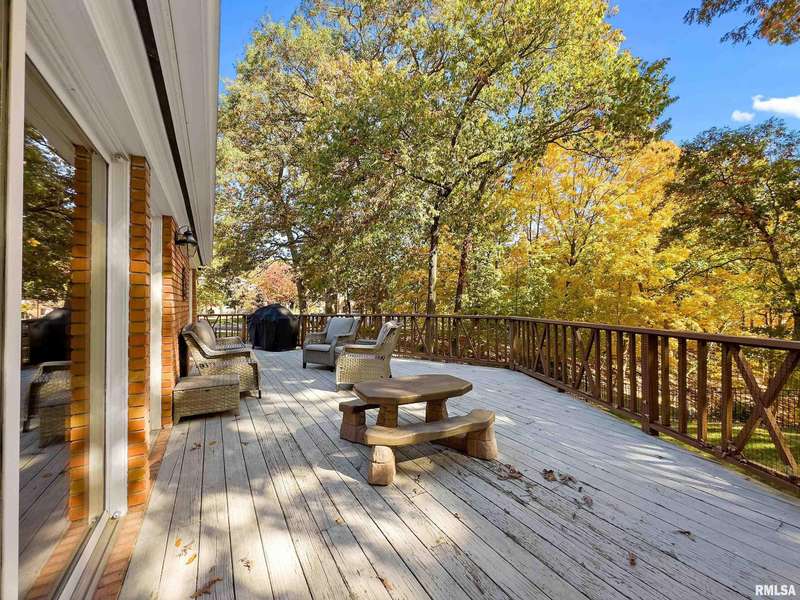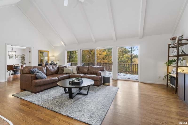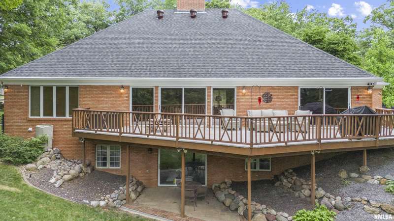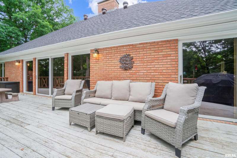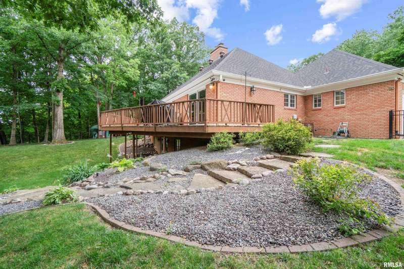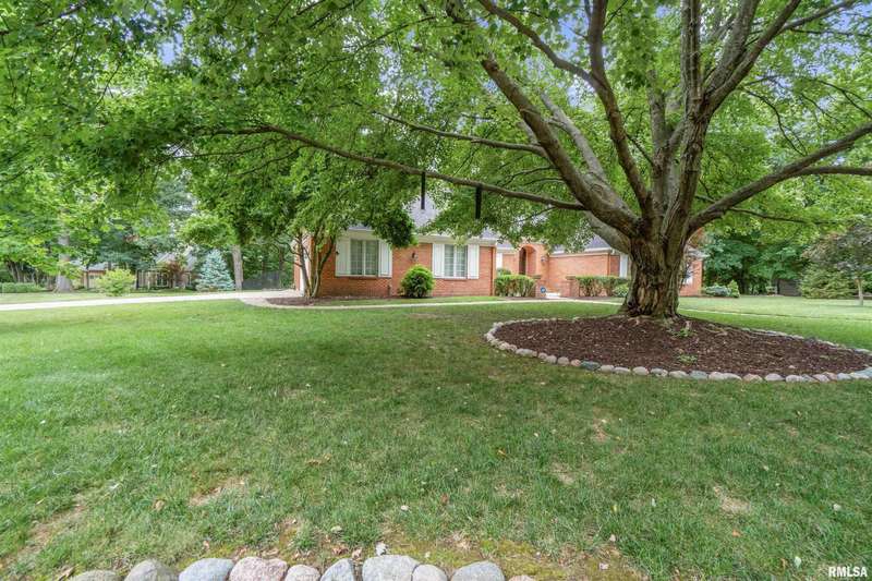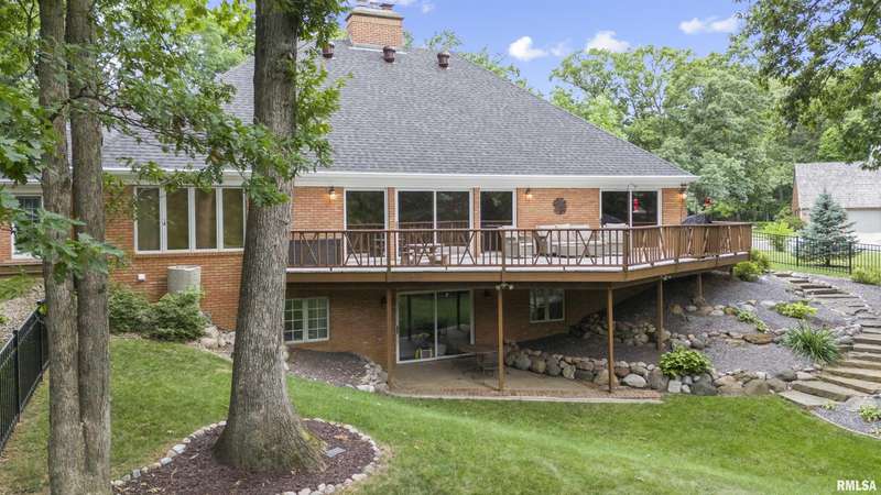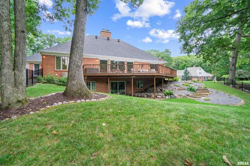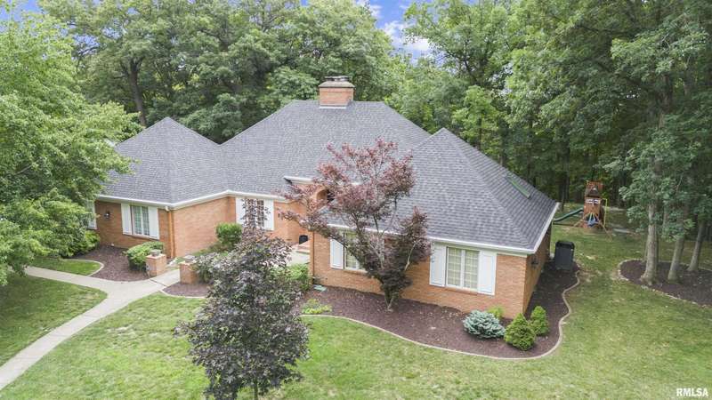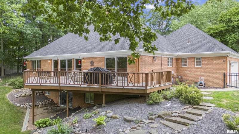 We have found what many thought was not possible: an updated all-brick ranch in one of Peoria's most sought-after neighborhoods-- prestigious Thousand Oaks! Discover the timeless elegance of this 5 bedroom, 3 full and 2 half bath property on a spacious, wooded cul-se-sac .75 acre lot. You are immediately drawn through the welcoming foyer into the stunning great room featuring cathedral ceilings, gas-log fireplace, gleaming hardwood floors, and access to the spacious deck. Right off the great room is the gourmet kitchen with large island, high-end appliances, bar, and informal eating area. Both the kitchen and great room allow for easy access to the front flex space, perfect for formal dining, living room, or play area. Convenient main floor laundry and 2 beautiful half bathrooms. The other main floor wing houses the 3 spacious bedrooms and 2 full bathrooms, including the oversized primary suite with luxurious bathroom (heated tile floors), walk-in closet, and exterior access. The newly finished walk-out basement adds a substantial 1420 square feet of living space, including a family room, private office, 2 huge bedrooms, full bathroom, and plenty of storage. The fenced-in rear grounds offer an expansive deck, lower patio, and private wooded views. Brand new 50-year roof. This rare offering combines the classic beauty you expect in Thousand Oaks with modern and thoughtful updates-- hurry and schedule your private showing today!