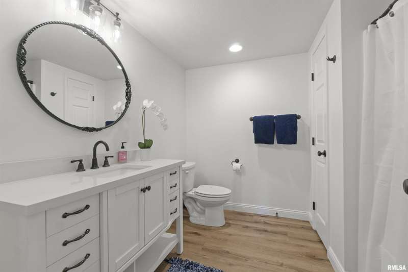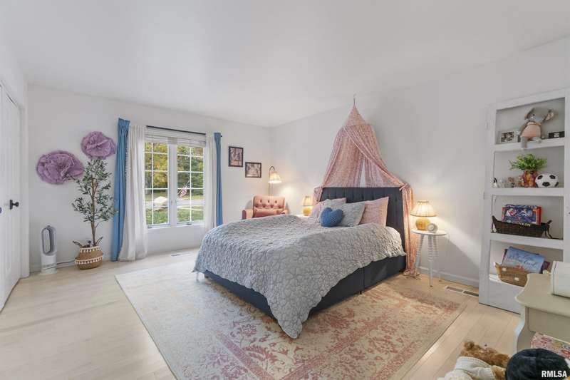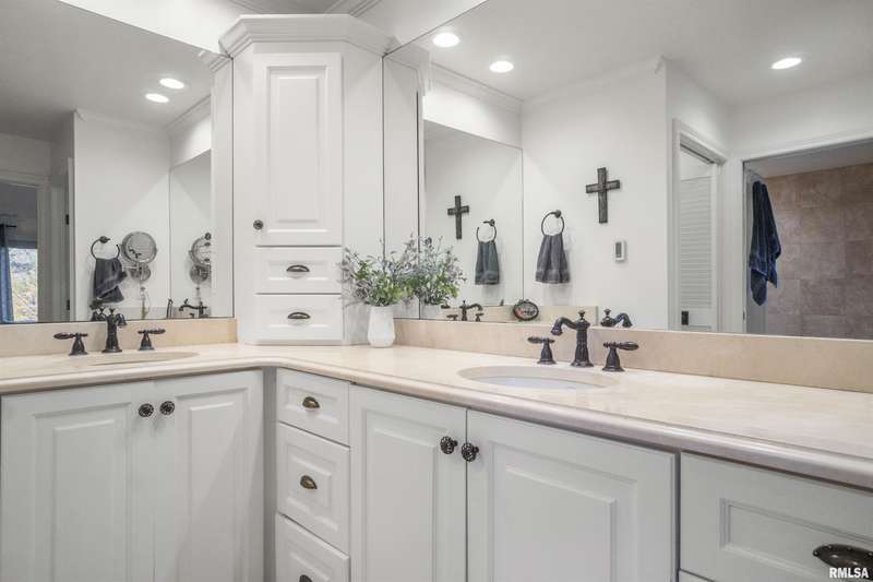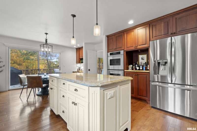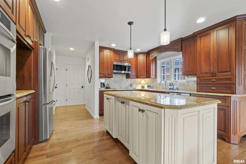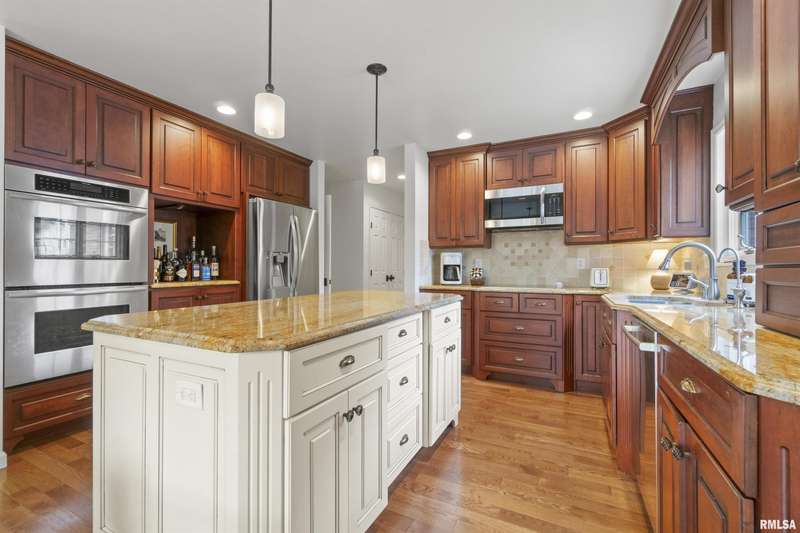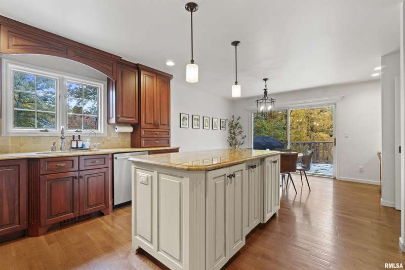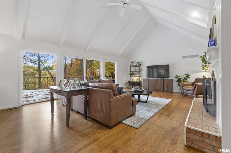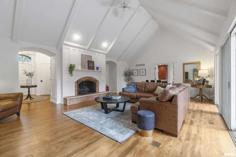 We have found what many thought was not possible: an updated all-brick ranch in one of Peoria's most sought-after neighborhoods-- prestigious Thousand Oaks! Discover the timeless elegance of this 5 bedroom, 3 full and 2 half bath property on a spacious, wooded cul-se-sac .75 acre lot. You are immediately drawn through the welcoming foyer into the stunning great room featuring cathedral ceilings, gas-log fireplace, gleaming hardwood floors, and access to the spacious deck. Right off the great room is the gourmet kitchen with large island, high-end appliances, bar, and informal eating area. Both the kitchen and great room allow for easy access to the front flex space, perfect for formal dining, living room, or play area. Convenient main floor laundry and 2 beautiful half bathrooms. The other main floor wing houses the 3 spacious bedrooms and 2 full bathrooms, including the oversized primary suite with luxurious bathroom (heated tile floors), walk-in closet, and exterior access. The newly finished walk-out basement adds a substantial 1420 square feet of living space, including a family room, private office, 2 huge bedrooms, full bathroom, and plenty of storage. The fenced-in rear grounds offer an expansive deck, lower patio, and private wooded views. Brand new 50-year roof. This rare offering combines the classic beauty you expect in Thousand Oaks with modern and thoughtful updates-- hurry and schedule your private showing today!