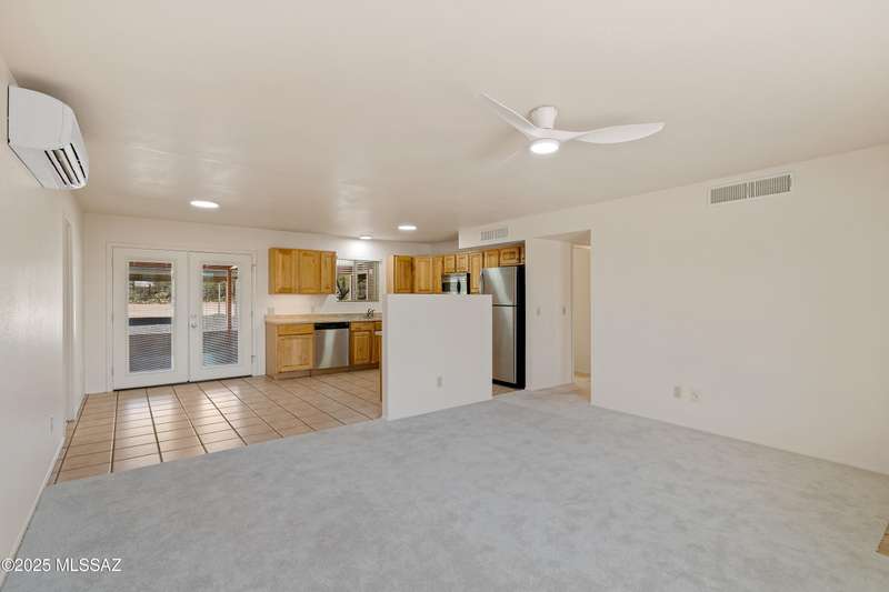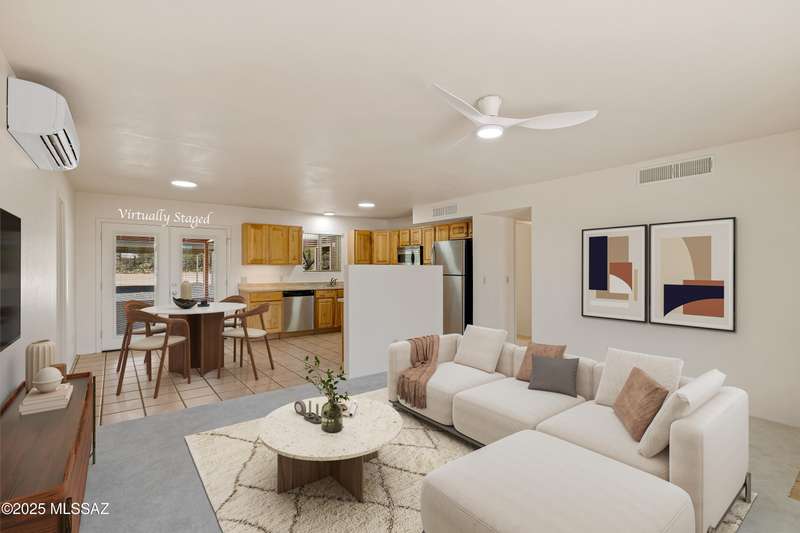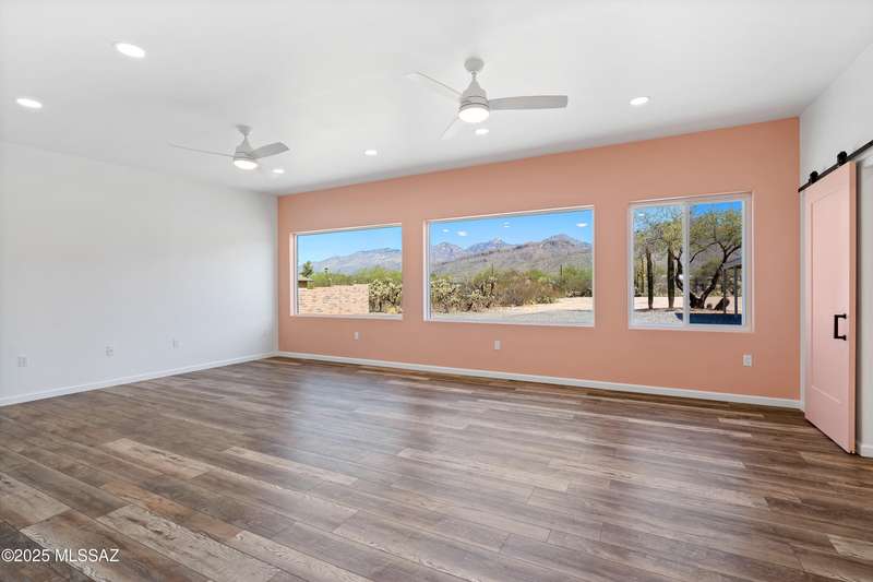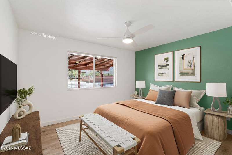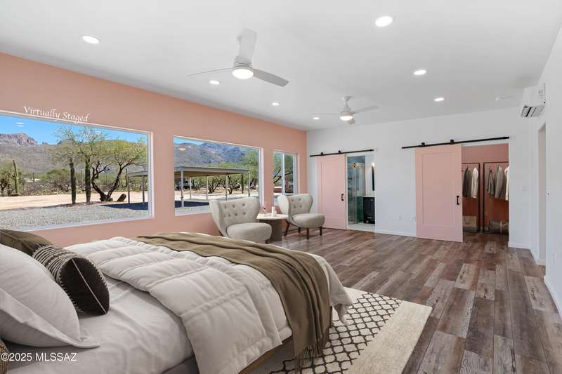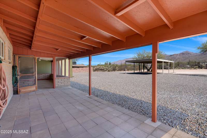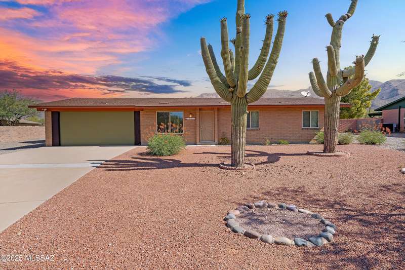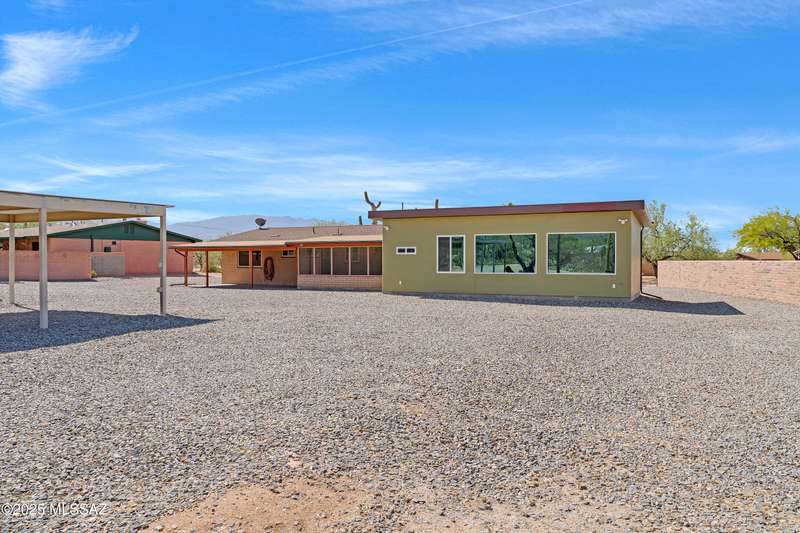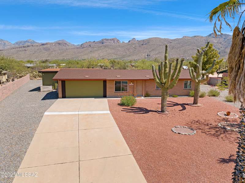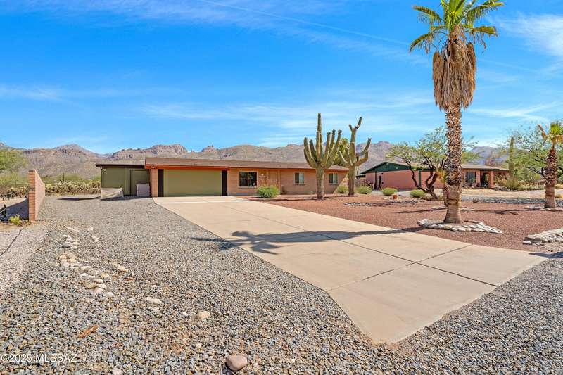 ALL ABOUT THE VIEWS! Masonry Tucson Ranch on 0.98 acre. Abuts county land! MOUNTAIN PANORAMA! The views are so fantastic, there's a custom addition called ''The Mountain Room.'' Built in 2022, a flex space that can be enjoyed as a grand primary suite, guest quarters or activity room. The floor plan features a 2nd Primary BR w/remodeled Bath, plus 2 addtl Bedrooms. Want perfect control of indoor temps? Each rm & garage is zoned! 3 min-splits, 8 heads, 6 tons cooling! 2019 Roof, R39 attic insulation! 2016 new windows &patio door! New fans, carpeting, inside/outside paint. The lot is flat, professionally graded, walled on the sides w/driveway to the back. Screened & open patio. Huge steel shade ramada for fun or cars. No HOA = FREEDOM. BONUS! AZ Ntl Golf Course 1.5miles from the front door!