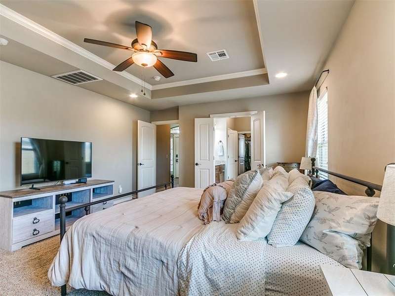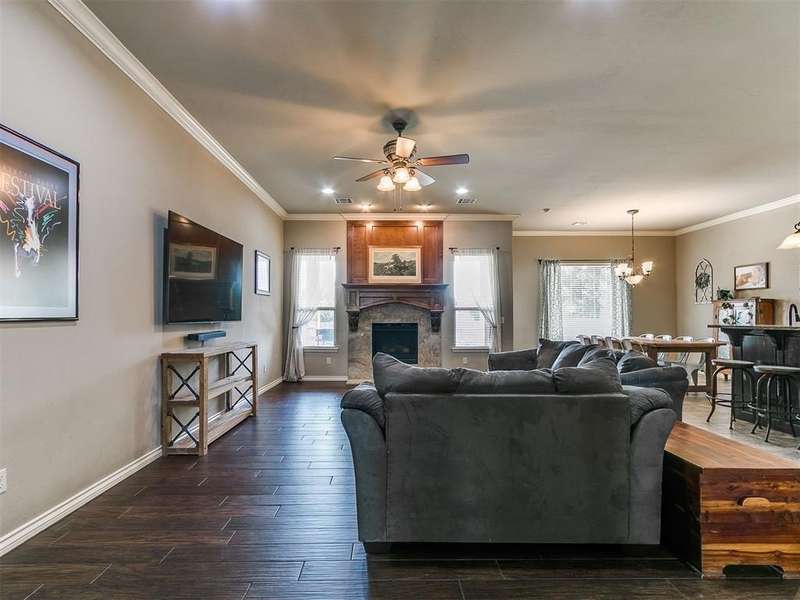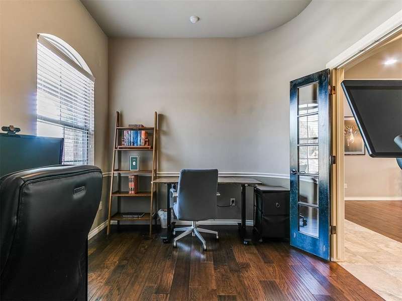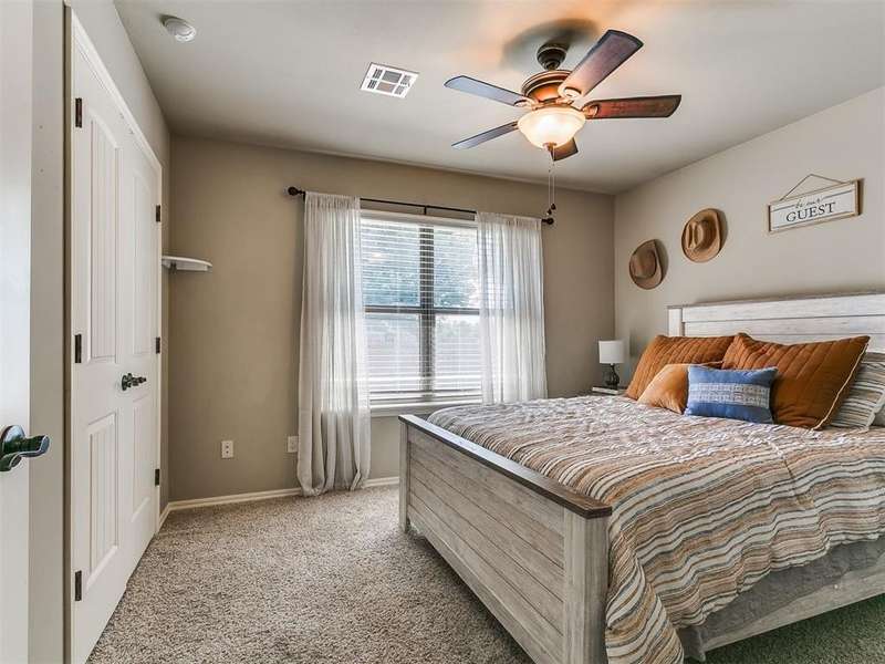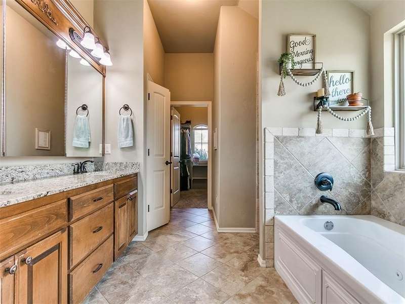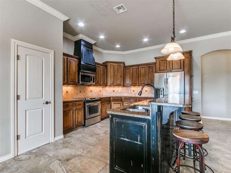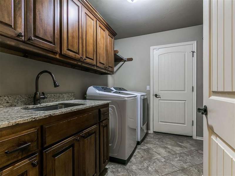 Cool In-ground Pool and Awesome Pergola with smooth paver stone patio plus LED Lighting!! This beautiful home faces West and enjoys shaded back patio in afternoon! Step inside on the tile entry and you will see an Open Living Room and Kitchen! Beautiful Granite countertops, a Pantry, and an abundance of cabinet and counter top space, plus the Large island with eating space! Big Living Room has gorgeous Wood-look Tile floors and a Gas Fireplace! 4th Bedroom is an optional study; Split bedroom floor plan with Spacious Primary Bedroom and Bathroom with Jetted Tub, Walk-in Shower, Double Sinks, Granite, and Walk-in Closet! Secondary Bedrooms with Ceiling Fans, and Walk-in Closets! Hall Bath Has Gorgeous Tiled Shower! Sprinkler System controls and Storm Shelter in Garage! Backyard play or garden space in addition to the separately safety fenced pool! Enjoy Summer with an In-Ground Pool 5ft deep! Covered Patio and A professionally built pergola with lighting.