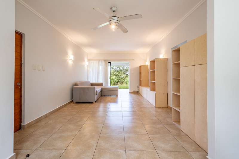 SOLE MANDATE - 2 bedroom ground floor apartment in popular Palm Lakes Estate. The apartment is at the end of the block, allowing for more space and privacy. Open plan living flowing out onto the covered veranda. The apartment has lovely serene views over the greenbelt and a path which leads down to a nearby dam. Master bedroom has built in cupboards and lovely door to ceiling windows making the room seem more spacious. 2nd bedroom is of decent size. Both bedrooms have air cons in them (Master Aircon is still under warranty) There is a separate 2nd bathroom. Both bathrooms now have monkey mesh on the windows. Apartment has metered electricity. There is a single covered parking and plenty visitors parking for the block. There is currently a tenant in place until end October 2025 Residents of Palm Lakes have all the amenities at their disposal; walking trials, swimming pools, restaurants, tennis courts. skate pump track, fishing dams. Call now to arrange a viewing!