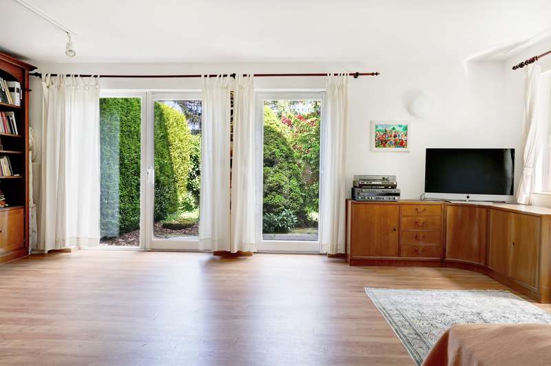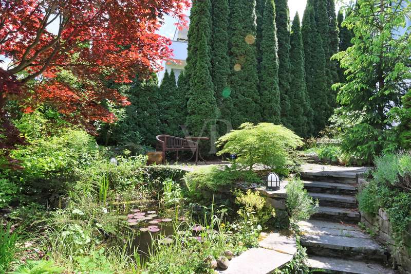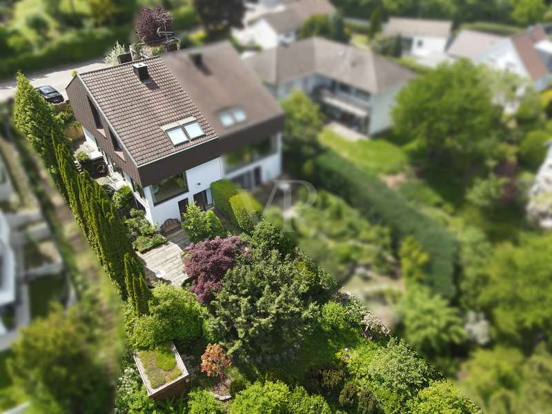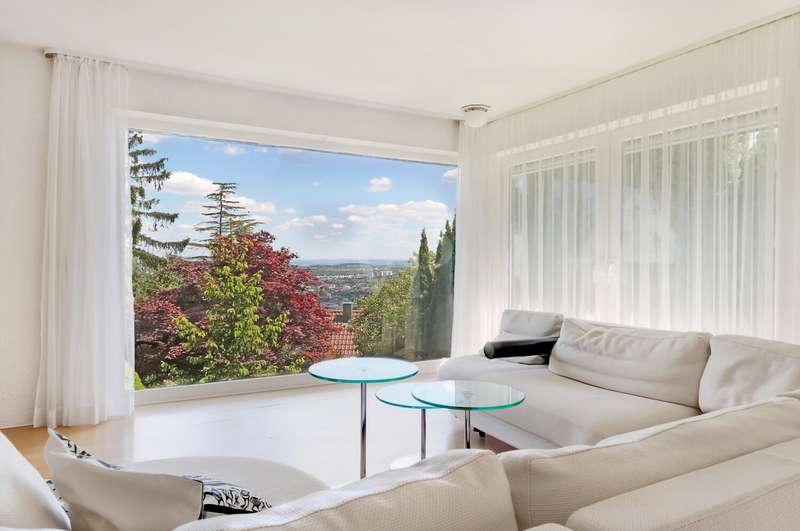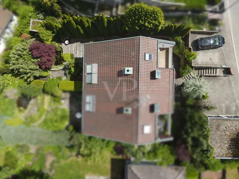 We are pleased to present this extremely well-kept detached house with granny apartment built in 1981. The house was built on a plot of approx. 467 sqm in a sought-after hillside location in Gerlingen and impresses with its split-level construction and generous room layout. The owners attached great importance to high-quality construction in the year of construction, which, together with a generous floor plan offering approx. 174 sqm of living space, resulted in a high level of living comfort. In addition to the excellent and idyllic location with north/east orientation, the house has other great attributes. The house has 3 living levels. The practical and attractive layout becomes apparent as soon as you enter the house. On the entrance level, there is a large, bright, open-plan kitchen, the guest toilet and the living room, which can be reached via a few steps. The living room impresses with a large panoramic window, which offers a wonderful view that you can enjoy from the living area, the dining area and the kitchen. In addition, all the windows are floor-to-ceiling, so the room is flooded with light. A beautiful tiled stove also creates a warm, inviting atmosphere. On the upper floor, which can be reached via a parquet-covered staircase, there is the master bedroom, a daylight bathroom with bathtub and shower as well as a "youth room" with a gallery and a sunny south-facing loggia. The bedrooms have a generous ceiling height, so that the built-in wardrobe in the bedroom offers plenty of space. It should also be mentioned that a dormer window could be realized here. A charming 1-bedroom apartment awaits you on the garden floor, which could easily be converted into a 2-bedroom apartment with little effort. This additional space is perfect for grandparents, guests or growing children. Good to use as it offers a small bathroom and a mini kitchen. There are also 2 cellar rooms and the boiler room on the garden level. The house is heated by underfloor heating - centrally controlled by a low-maintenance storage heater. There are 3 terraces in the garden, so you can reach a terrace from almost every living level. You will also be delighted by the enchanting water lily pond. This is a wonderful place to relax from everyday stress. There is also a tool shed in the lower part of the garden, which can be used to store equipment or garden furniture. There is also an irrigation system as a further highlight. A detachable single garage with electric door and a parking space are available for your vehicles. Below the garage there is another room that can be used as a hobby room or workshop. The wooden palisades at the entrance to the house to protect the slope were renewed in 2021. This house can be your new home in the short term if you wish. Do not hesitate to contact us, it's worth it!