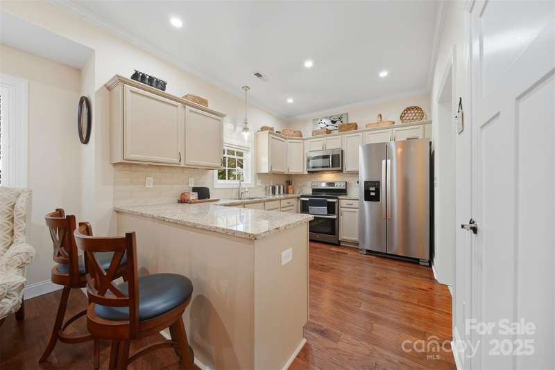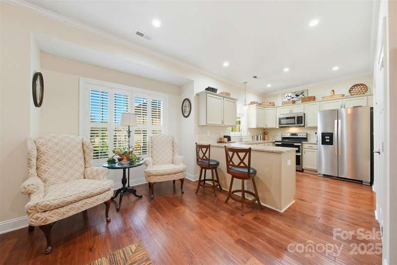 Absolutely perfect condition! This beautiful all-one-level townhome offers true easy living with no steps and an ideal layout for those looking to downsize or enjoy retirement living. The home features a warm and inviting fireplace, an immaculate kitchen with stainless steel appliances, upgraded countertops and cabinetry, and gorgeous hardwood floors throughout. The primary suite includes a spacious walk-in closet and a well-appointed bathroom. Enjoy relaxing on your private back patio in a quiet, peaceful location. Despite the serenity, you're right in the heart of Conover-within walking distance to shopping and dining, and just minutes to I-40, 10 minutes to Hickory, and about an hour to Charlotte Douglas Airport. This home truly offers the best of comfort, convenience, and low-maintenance living! Do not wait on this one....