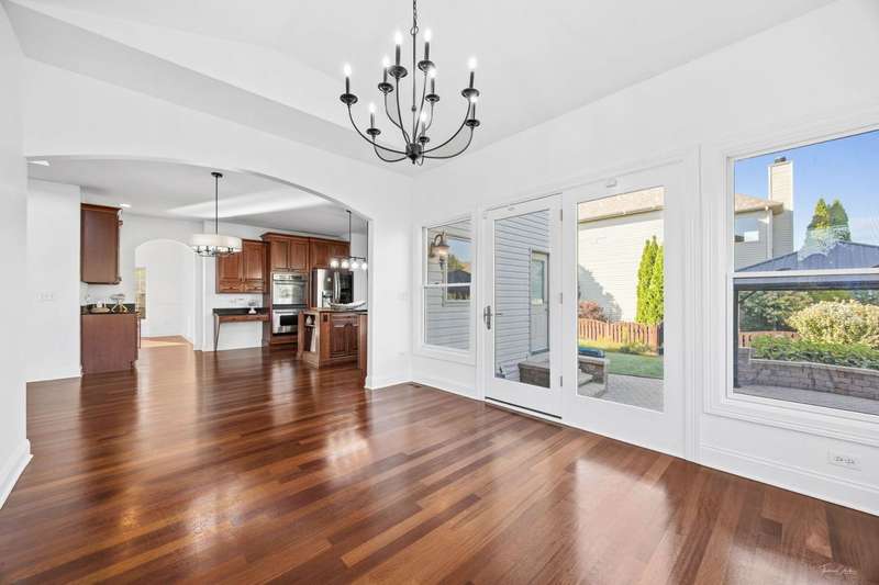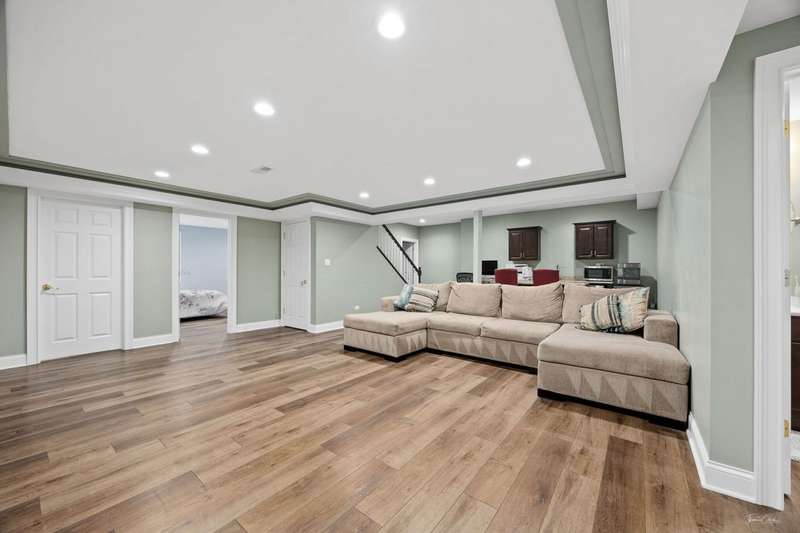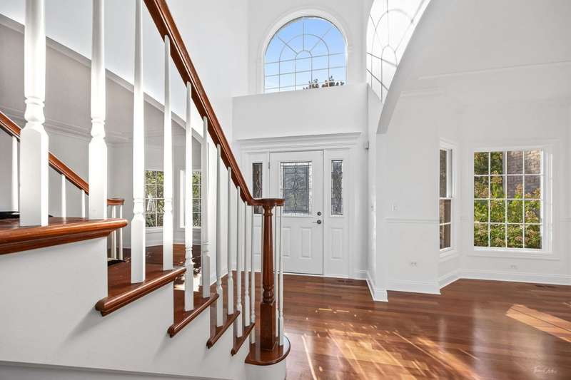 FRESHLY UPDATED & FABULOUS WITH OVER 5,000 SQUARE FT. OF LUXURIOUS LIVING SPACE! Welcome to this beautifully refreshed home in the highly sought-after Grande Park Swim & Tennis Community, just a short stroll to the clubhouse. Recently PAINTED THROUGHOUT IN BENJAMIN MOORE'S CHANTILLY LACE, INCLUDING trims, this home radiates light & elegance from the moment you step inside. The main level showcases NEWLY REFINISHED Brazilian Cherry hardwood floors, while the upper level offers BRAND-NEW PLUSH CARPETING for ultimate comfort. A dramatic two-story foyer & family room with a floor-to-ceiling stone fireplace set the tone for luxury, complemented by an elegant turned staircase, upstairs catwalk, light-filled sunroom, tray ceilings, graceful archways, bay windows, and French doors. The chef's kitchen is designed for both everyday living and entertaining, featuring a spacious center island, stainless steel appliances, butler's pantry with beverage fridge, and through the sunroom to the backyard FENCED IN retreat-complete with a paved patio with seat wall, fire pit, and pergola. Upstairs, you'll find 4 generous sized bedrooms, including a serene primary suite with a spa-like bath, a MASSIVE CUSTOM WALK-IN CLOSET WITH STUNNING BUILT-INS, plus an additional closet so you don't have to share! The fully finished, recently renovated basement offers incredible versatility with 3 additional bedrooms, an office, exercise room, playroom, expansive recreation area, wet bar, and plenty of storage. Additional highlights include updated light fixtures, a refreshed asphalt driveway, Hot water heater(2021) and a roof less than 5 years old. All of this in an unbeatable location-just steps from the pool, tennis courts, and clubhouse. Move right in and enjoy the resort-style amenities & vibrant lifestyle of picturesque Grande Park!