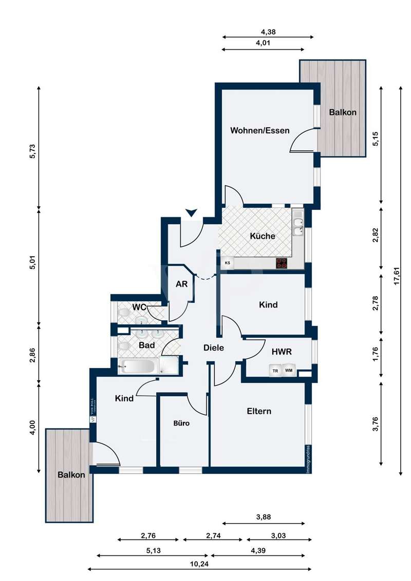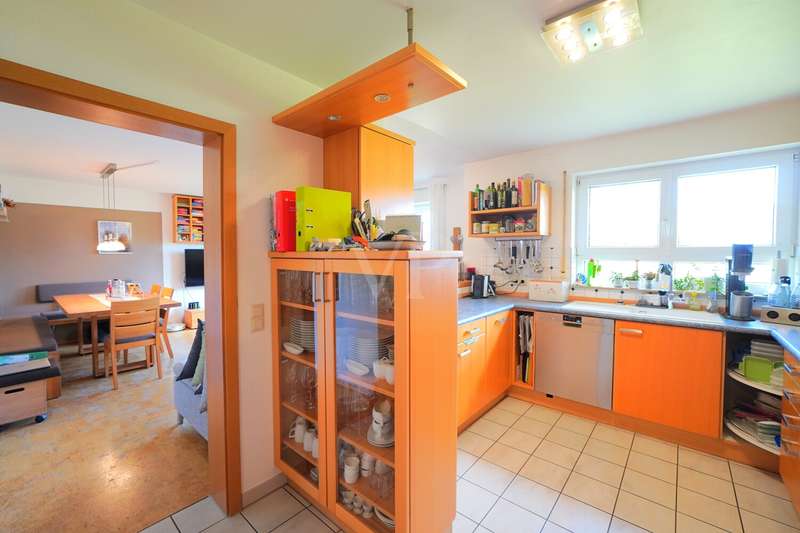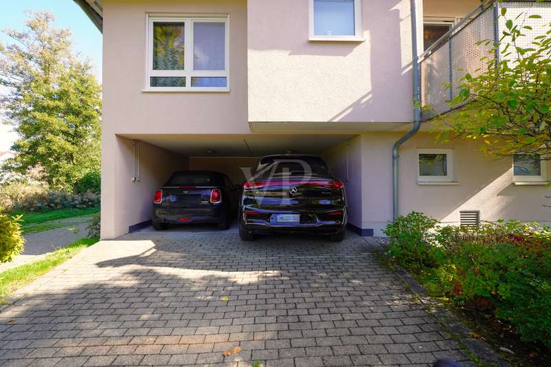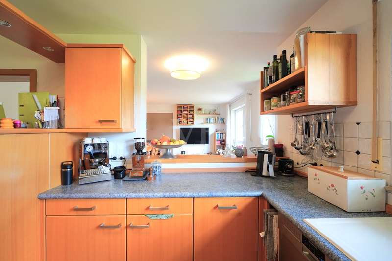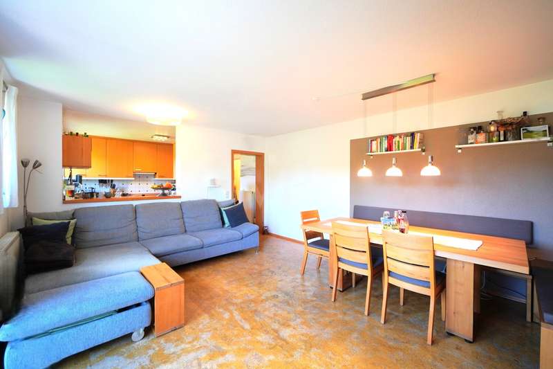 This well-kept condominium, built in 1994, boasts a generous living space of approx. 118 m² and a well thought-out room layout. The apartment is located on the 1st floor and, with a total of five rooms - including three bedrooms - offers ideal conditions for couples or families who value space and living comfort. The heart of the apartment is the open-plan living, dining and kitchen area, which impresses with its bright and friendly atmosphere. A modern fitted kitchen is already available and offers everything needed for daily use. Two large balconies facing east and south, each accessible via the living room and one of the children's rooms, extend the living space and invite you to relax in the sun. The bedrooms are perfectly tailored to the needs of a family: A cozy master bedroom offers a retreat and comfort, while two further rooms can be used flexibly as children's or guest rooms. There is also a practical office room, which can also be used as a dressing room. The daylight bathroom is equipped with a shower, bathtub, WC and double washbasin and therefore meets the highest standards. There is also a separate guest WC. The space is rounded off by a practical pantry for your everyday utensils and a utility room with ample storage space and a washing machine connection. The apartment also has a garage with an electric door and wallbox connection, a carport and two practical lockable cellar compartments. This provides ideal storage space for both vehicles and personal belongings. The apartment is in a very well-kept overall condition and is available for occupancy from May 2026.