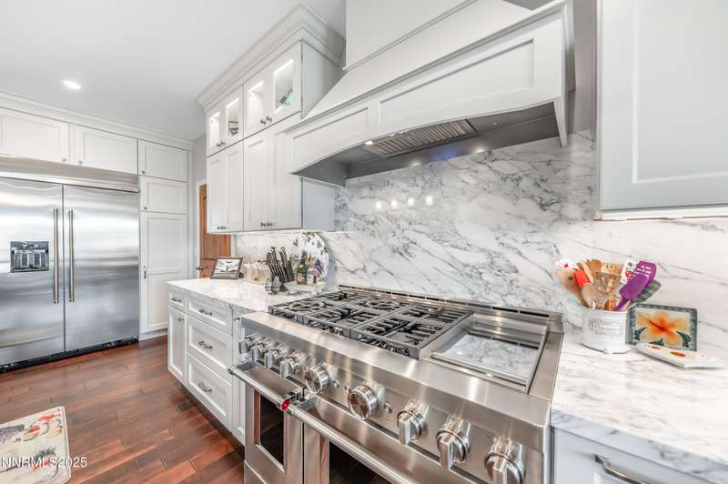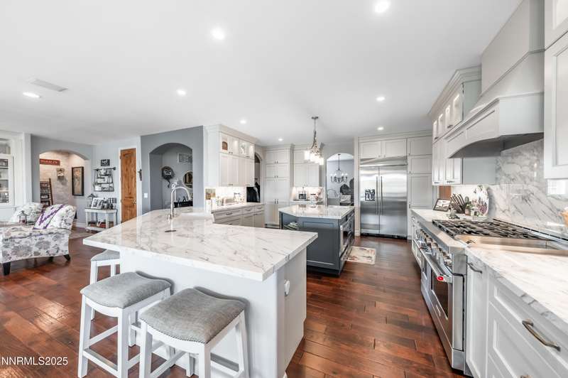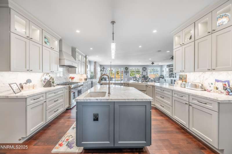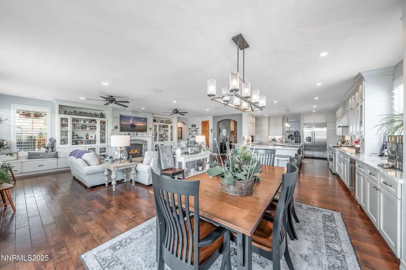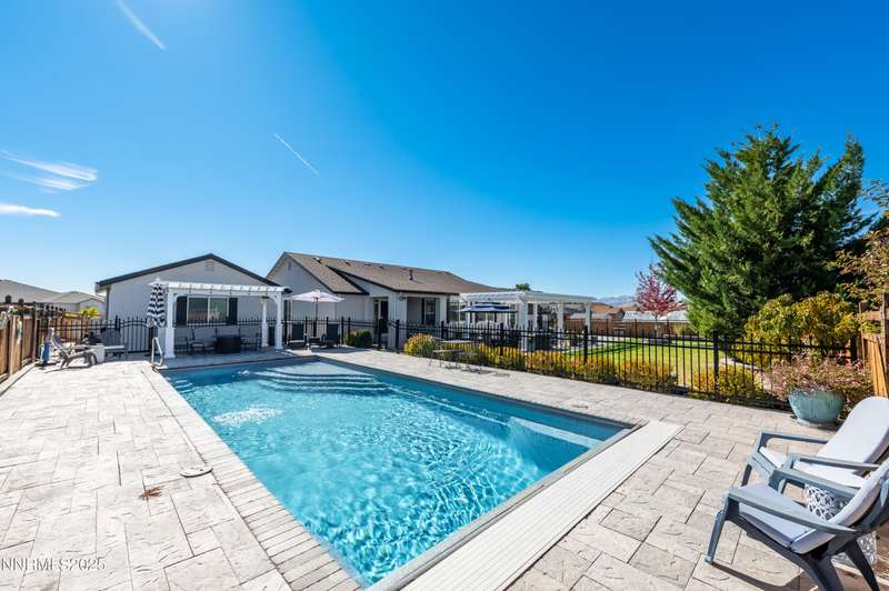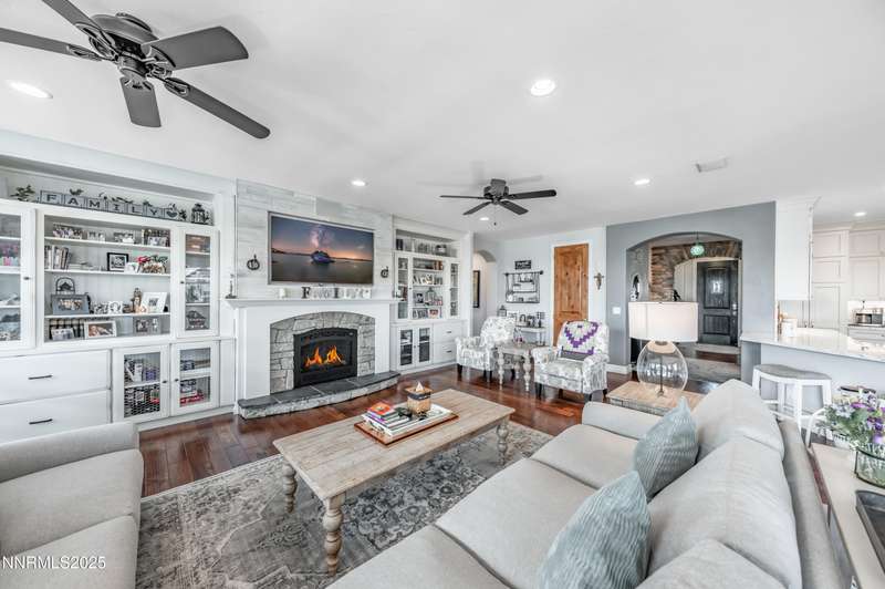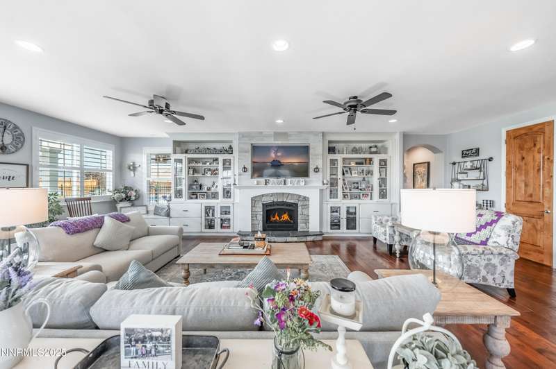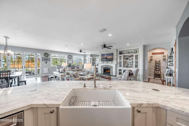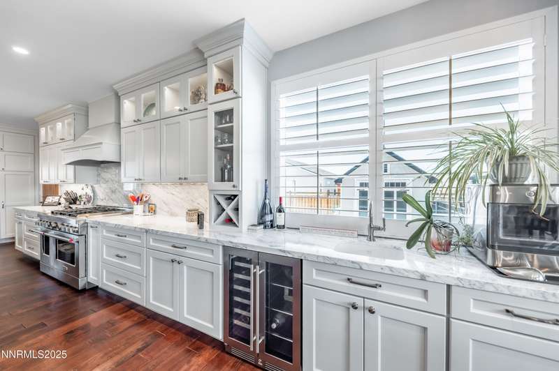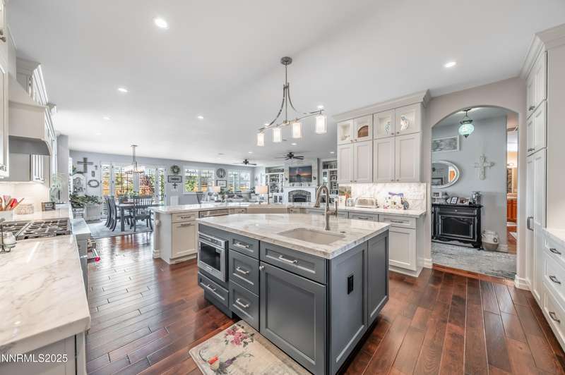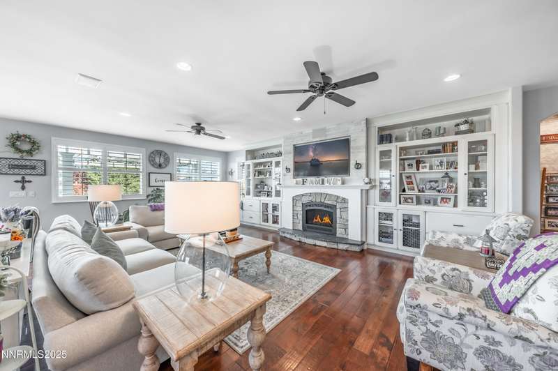 Morning light streams through the windows, casting a golden glow across the wood floors. You step into the expanded great room, coffee in hand, and take in the open, airy feel — sunlight pouring in from every direction, bouncing off the soft tones of the stone fireplace and the built- ins beside it. It is a warm and welcoming space that lets you know you're home. In the heart of it all, the newly remodeled kitchen is a true showstopper. Marble counters and backsplash sparkle beneath the light. The 48" range with double oven hums quietly, ready for breakfast pancakes or a dinner party feast. Stainless steel appliances, a prep sink, custom island, beverage fridge, and bar sink make the space as functional as it is beautiful. The cabinet drawer glides open smoothly, and the roll-out trays make finding what you need effortless. As afternoon arrives, the French doors swing open to the backyard, blurring the line between indoors and out. The paver patio and pergola offer the perfect spot for lunch in the shade, while laughter drifts from the pool area beyond the gated entry. For the outdoor enthusiast, there's room for everything — RV parking, a two-car shop ready for projects or storing your side by side. Evening brings a new kind of energy. The great room glows in the soft light of the setting sun, windows framing a peaceful view. Friends and family fill the open floor plan. Whether it's a formal dinner in the dining room or a cozy meal by the kitchen, this is where entertaining and connection collide. As the night winds down, retreat to your primary suite. The spa-like bath invites you to unwind with a soak in the garden tub, a rinse in the walk-in shower, or a moment at the dual sinks. A waltz into the walk-in closet feels like your own private dressing room. Custom built-ins line the walls — drawers, shelves, and clever storage nooks for shoes, bags, and accessories — keeping every piece in its place. For those working from home, the dedicated office offers the best of practicality with built-ins for organization and display. Even routine tasks feel lighter here — the laundry room features beautiful hard-surface counters, a sink, and plenty of custom cabinetry to keep everything neatly tucked away. This home truly checks every box — and then some. So if you are looking for the ultimate "this place has everything" kind of home, this is it!