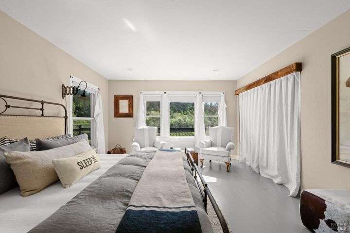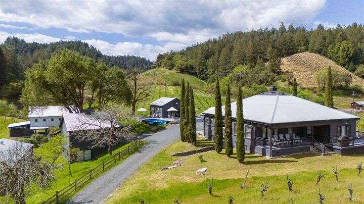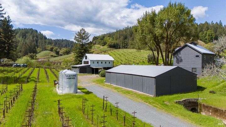 Welcome to Old Vine Farms, a one-of-a-kind 74.51 acre Wine Country estate in the heart of Forestville. Nestled within four valleys: Green Valley Creek, Green Valley, Russian River Valley, Sonoma Valley. Old Vine Farms isn't a replica it's a historic, working farm founded over a century ago by one of Sonoma County's pioneering grape-growing and winemaking families. From the back porch, look out over a village-like setting with five structures. At its center: a beautifully renovated 3-bed, 3-bath farmhouse blending old-world charm and modern design. A separate 1-bed, 1-bath guest cottage offers a peaceful, private retreat for visitors. A pool house and deck surround a plunge pool, perfect for relaxing or entertaining under the warm Sonoma sun. The reimagined vineyard barn hosts unforgettable gatherings. The vineyard office below that overlooks 10+ acres of vines and 65+ acres of trees. A spacious workshop awaits any hands-on pursuit or creative endeavor. Rare dry-farmed old vine Zinfandel from the 1800s and early'70s Chardonnay grace the vineyard. Private trails wind through redwoods, firs, and bay trees. Just over an hour from the Golden Gate, Old Vine Farms offers a timeless way of life without sacrificing modern comfort. Furnishings also available.