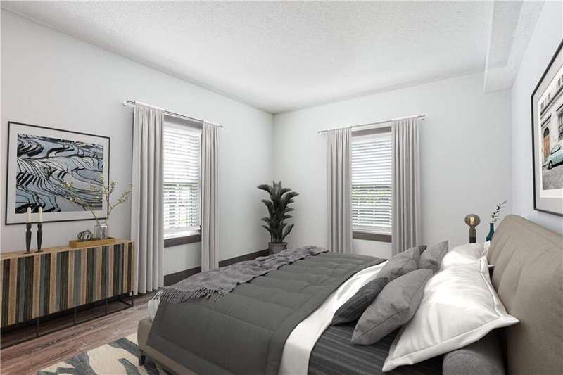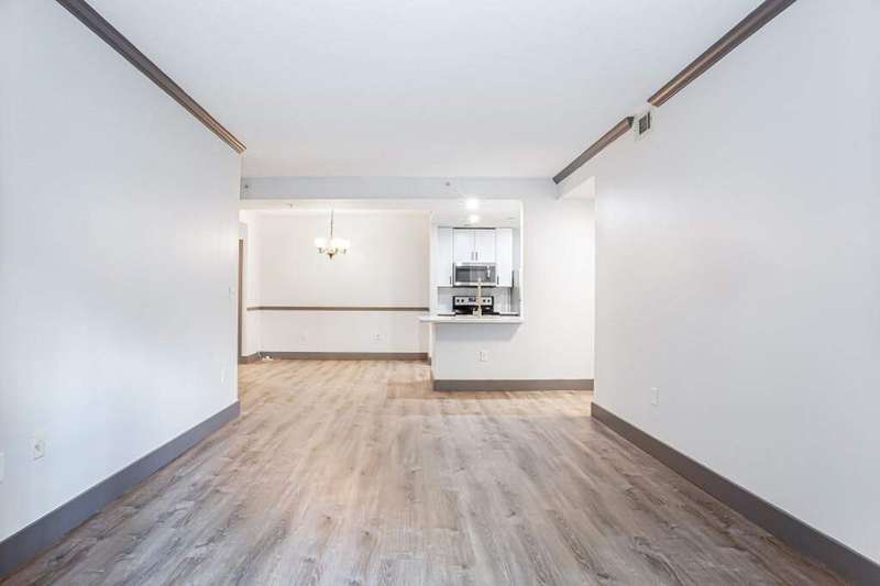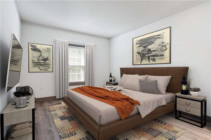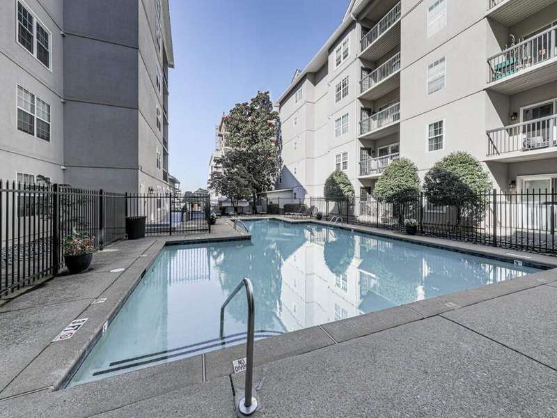 Located in the heart of Midtown, this stunning first floor, 2-bedroom/2-bath corner unit offers a prime opportunity for city living at its best! As an end unit, it provides additional privacy and extra sunlight into the home. Step into the welcoming foyer, which flows seamlessly into the open-concept living space, featuring 9-foot ceilings, beautiful hardwood flooring, and fresh paint throughout. The bright dining area, kitchen, and living room are perfectly positioned to take in the views. The kitchen is a chef's delight with quartz countertops, SS appliances, grey cabinetry and a convenient laundry closet that doubles as a pantry for extra storage. The roommate-style layout offers maximum privacy, with each bedroom enjoying views. Both bedrooms are freshly painted, with new flooring. The spacious primary bedroom features a walk-in closet and an en-suite bathroom with newly updated vanity. The secondary bedroom boasts double closets and an adjacent bathroom with its own vanity. This unit comes with two covered parking spaces! The gated, secure community offers a range of desirable amenities including covered garage parking, the largest guest parking area in Midtown, a fitness center, a pool, a courtyard with a fountain and grill, a dog run, EV charging stations, and a Club Room. All of this, with low HOA fees compared to neighboring properties! You'll be just steps from MARTA, Piedmont Park, the High Museum, the Alliance Theater, The Fox, and an array of restaurants and shops. Experience Midtown living at its finest!