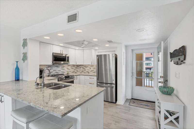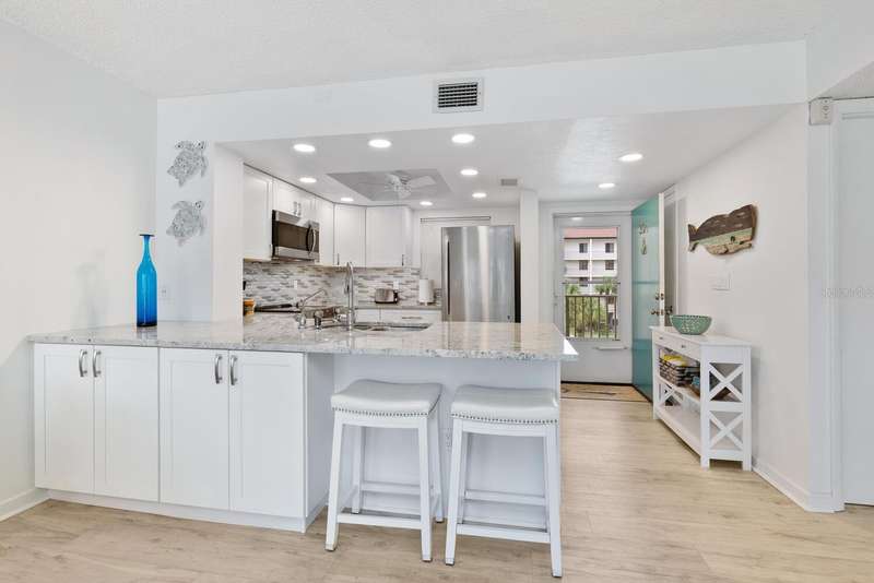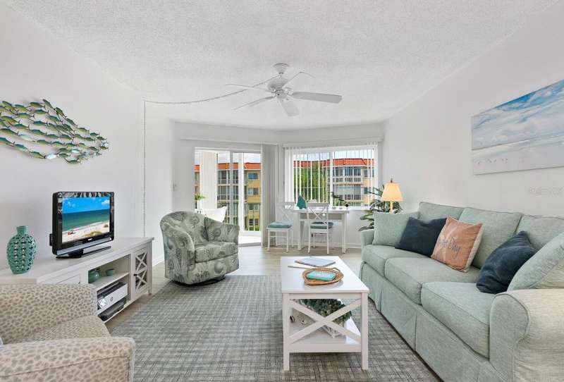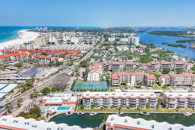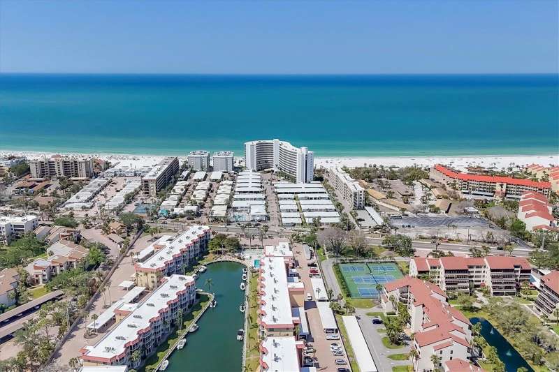 Looking for a home for your boat, a beach lifestyle, or an investment? Enjoy sunrises over the marina, afternoons on Siesta Key Beach, and evenings on your enclosed balcony overlooking the boats and colorful skies. This furnished 1BR/2BA condo in Siesta Harbor is beautifully updated with an open floor plan, luxury vinyl flooring, remodeled kitchen (2022) with white shaker cabinetry, granite counters, glass backsplash, peninsula seating, and stainless appliances. Bathrooms feature quartz vanities and tiled showers; guest bath includes a soaking tub. Impact windows, same-floor laundry, and private storage add convenience. Siesta Harbor, a 55+ community, offers private beach access, heated pool/spa, lush landscaping, fishing pier, and a full calendar of social activities. Dock leases may be available for boats up to 30’. Additional amenities include covered parking, on-site manager, and a new roof (2025). Ideally located off the South Bridge near dining, shops, and the free Siesta Key trolley, this turnkey condo is perfect as a vacation retreat, full-time residence, or investment.