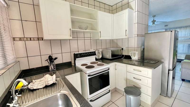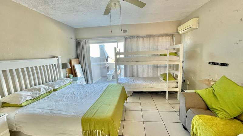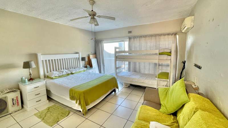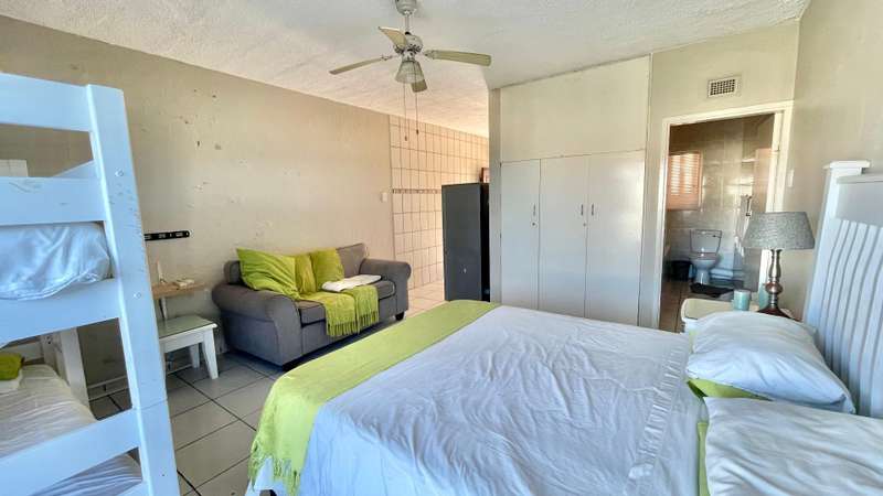 ABSOLUTE BARGAIN Neat studio apartment at the popular Ithaca Resort. This open plan corner apartment has a spacious living area and a balcony with a built in braai and great sea views. Immaculate kitchen and tiled throughout. This studio is perfect for holiday letting or as a "lock up and go" holiday apartment. Within walking distance to Lucien Beach and close to all amenities.