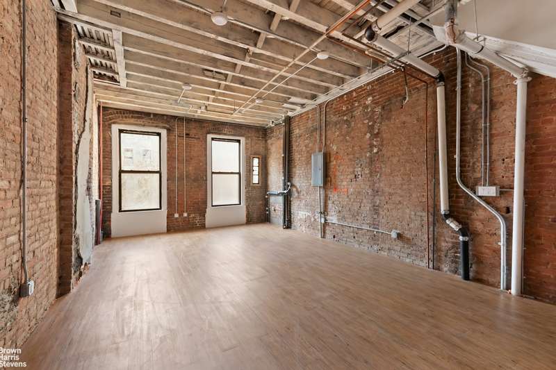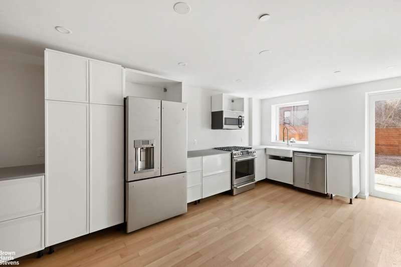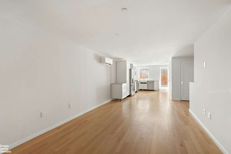 The garden level of the Owner's Triplex is fully renovated, showcasing a spacious bedroom, a windowed bathroom, an open kitchen with natural light, and direct access to a massive, south-facing backyard-ideal for outdoor gatherings or relaxation. The parlor floor features soaring 10-foot ceilings and a garden-facing great room that has been cleared back to the studs, exposing beautiful original ceiling timbers and exposed brick walls, setting the stage for an extraordinary living space.