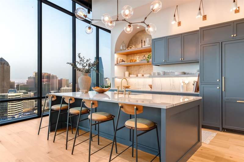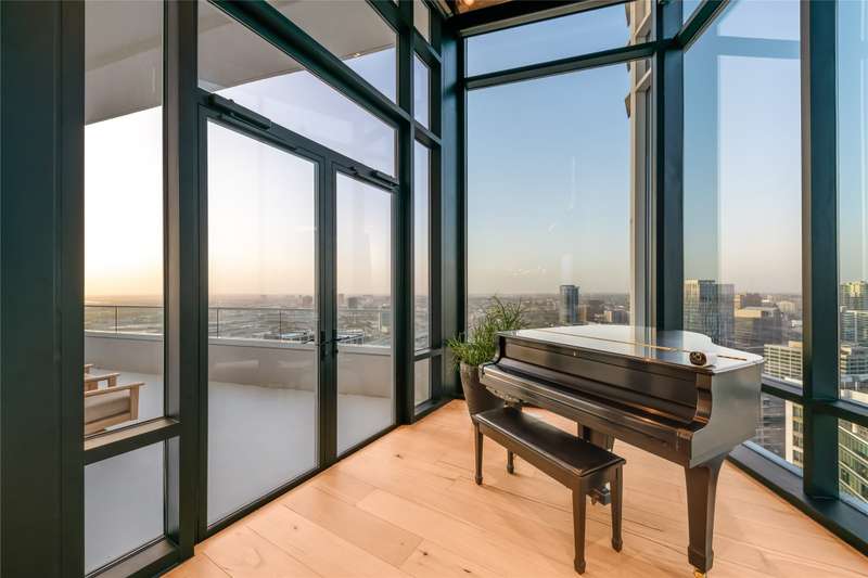 Experience a new definition of luxury in the sky, located on the 32nd floor, the tallest in all the W residences. Completely redone with brand new finishes this one-of-a-kind penthouse offers breathtaking views throughout with floor-to-ceiling windows complemented with both east and west patios. Featuring top-tier finishes, roman plaster textured walls, welcomed with Lutron lighting that casts a soft, welcoming glow perfect for setting the mood for entertaining guests. The expansive open concept of living and dining areas flow seamlessly into a stunning chefs kitchen, leading to a one-of-a-kind home bar with commercial features. Equipped with a Hoshizaki pebble ice maker, a Miele glassware dishwasher, a wine cooler, and a Toki highball machine found exclusively in top bars worldwide, chills whisky and soda to perfection, preventing dilution while delivering five times the carbonation of regular soda water. Architectural elements elevate the design, enhancing the dramatic city views throughout. The primary suite greets you with a cozy seating area and a see-through gas fireplace, creating both warmth and a sense of separation from the spacious bedroom. The adjoining bath features a luxurious double primary shower being led to a large walk-in closet. Designed for ultimate entertainment, the penthouse features five zones of Sonos speakers, including built-in subwoofers, for an immersive audio experience. In addition to hotel-style amenities including room service this is a prime location, with a newly renovated lobby coming soon. This penthouse offers a sophisticated retreat in the heart of the city, combining convenience, style, and world-class amenities for those seeking a home in the sky.
