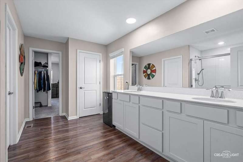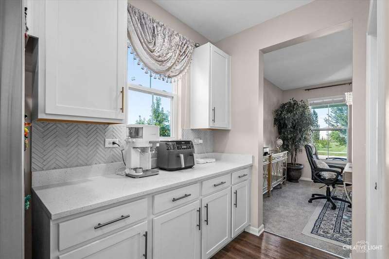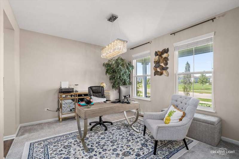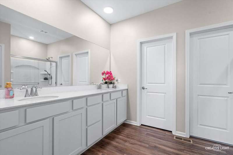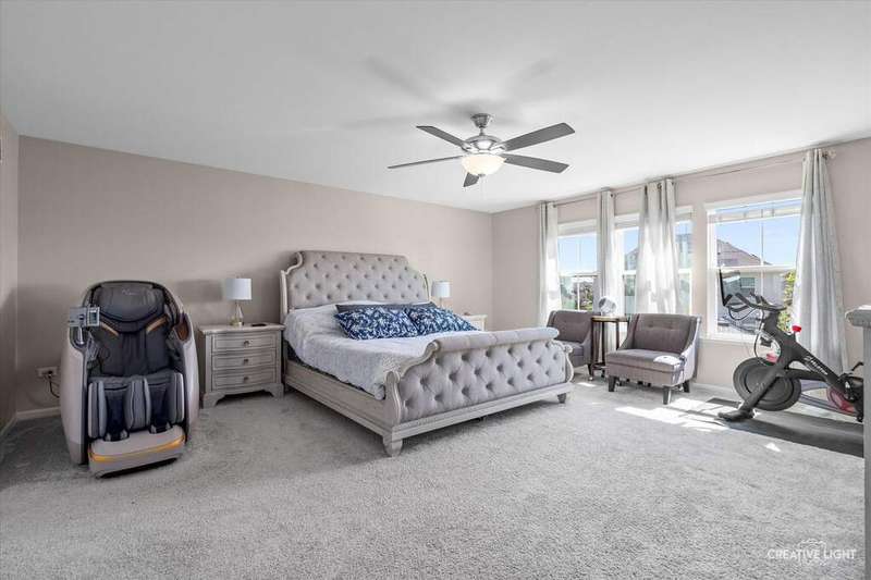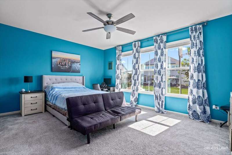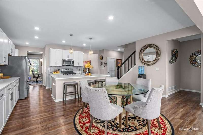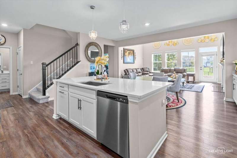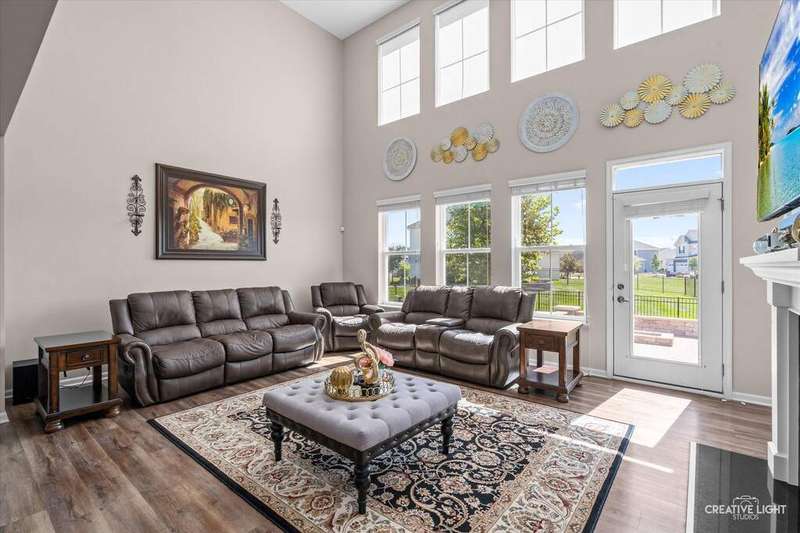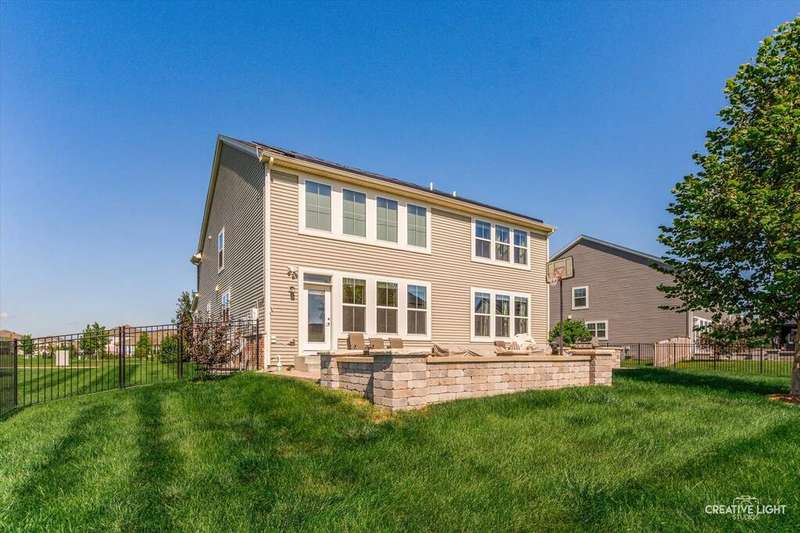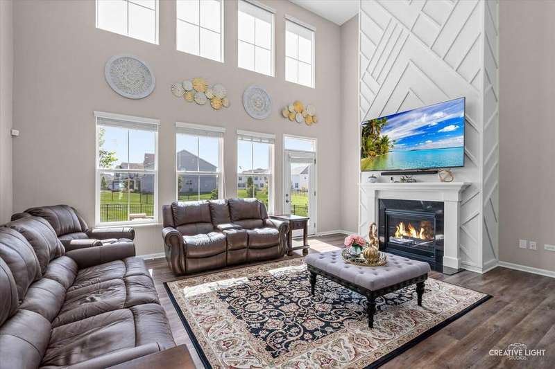 Welcome to desirable Creekside Crossing subdivision. Chefs dream kitchen designed with space, style, and efficiency in mind. This modern kitchen features stunning White Quartz countertops, all stainless-steel appliances, White 42" Aristokraft cabinets, an oversized island with sink and breakfast bar, a butlers pantry and walk-in pantry! The kitchen also opens to the two-story family room with fireplace surrounded by feature wall. Stunning and versatile dining room off of the foyer. Main level bedroom includes ensuite bath & walk-in closet, ideal for guests and in-laws. Three additional spacious bedrooms on 2nd level. Primary bedroom with large ensuite bath and oversized walk-in closet. Additional bedrooms share Jack and Jill bath. Additional highlights include 9' ft First floor ceilings, Shaw Vinyl Plank flooring, 30 year Architectural roof shingles. Smart Home features include Ring Video Doorbell Pro. Fenced yard with brick paver patio including seating wall and fire pit. Cost saving solar panels! Plainfield School district with Plainfield North High School. Close to Downtown Plainfield Entertainment and Shopping, Rt 59 corridor and I-55.