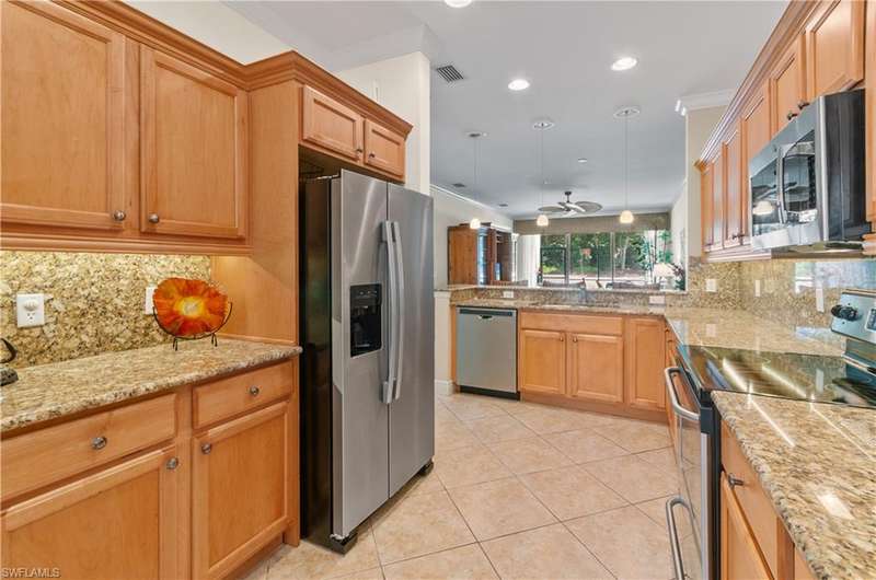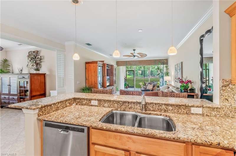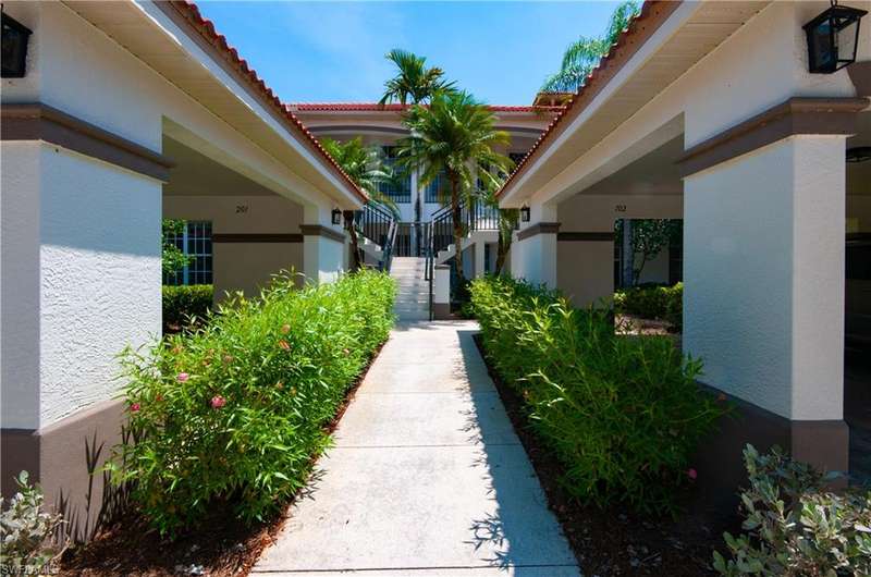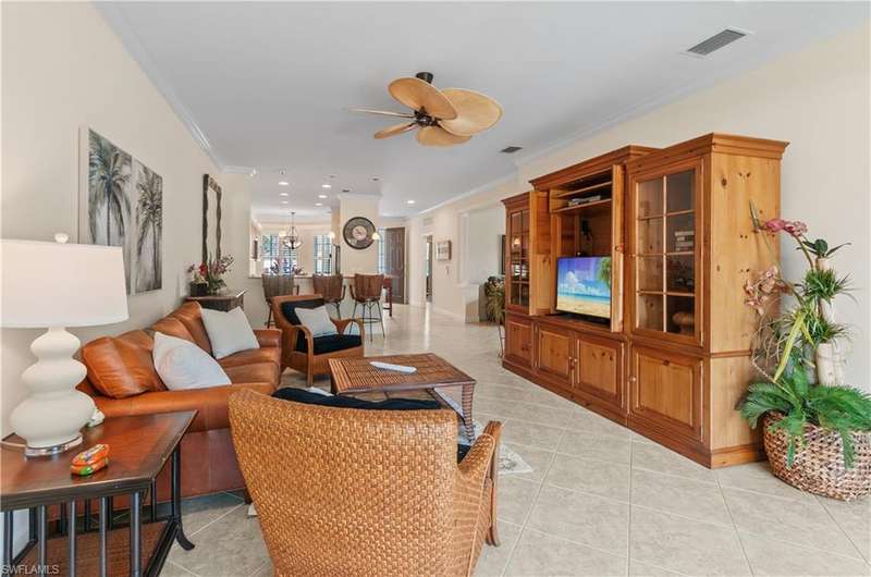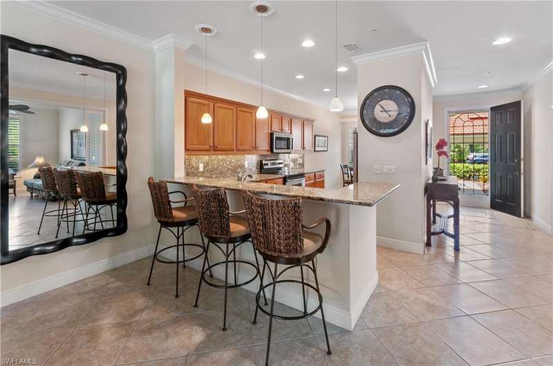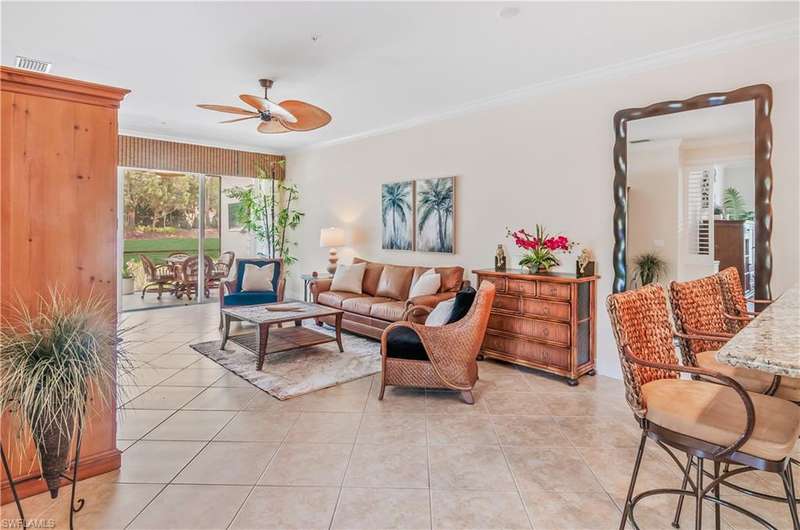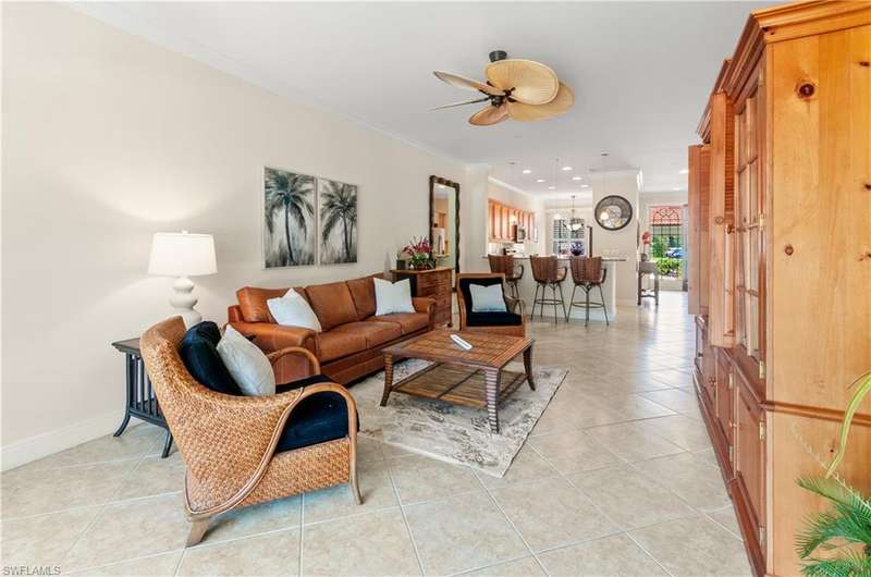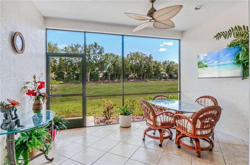 End-unit with Lake & Golf Views on a Quiet Cul-de-sac and GOLF INCLUDED! Enjoy the best of Florida living in this beautifully updated TURNKEY first-floor, end-unit condo featuring 2 bedrooms, 2 full baths, and a versatile flex room perfect as a den, home office, or guest space. With sweeping views of the lake and golf course, the screened lanai faces southwest, offering breathtaking sunsets and serene privacy. This open-concept floorplan is designed for both relaxed living and effortless entertaining, with split bedrooms ensuring guest comfort and privacy. Located in the highly desirable bundled golf community of Vasari, residents enjoy golf, tennis, a state-of-the-art fitness center, luxurious resort-style pool and spa, and a vibrant clubhouse all included! Ideally situated near award-winning Gulf beaches, lively 5th Avenue in Naples, and just a short drive to RSW Airport. With an abundance of dining, arts, shopping, and nature trails nearby, this home is the perfect blend of relax