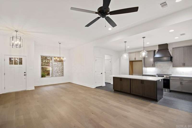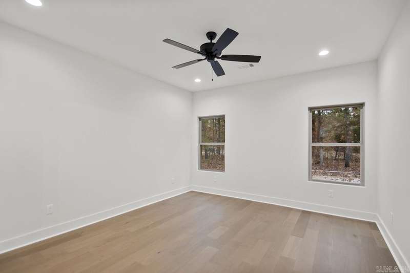 Discover luxury in this new construction home nestled in the prestigious Hot Springs Village golf community! This stunning 3-bedroom, 2-bathroom residence sits on a flat, tree-lined lot, offering privacy and natural beauty. The oversized 2-car garage provides ample space for vehicles and storage. Inside, enjoy a custom-designed kitchen with top-of-the-line stainless steel appliances, sleek countertops, and a large island perfect for entertaining. The open-plan living area features a cozy fireplace, soaring ceilings, and high-end finishes throughout, creating a warm and inviting atmosphere. With access to world-class golf courses and serene community amenities, this home is ideal for those seeking modern comfort and an active lifestyle. Move in and start living your dream today! Hardwood floors throughout. 3 foot doorways make this home accessible. Flat yard and zero steps into front door. Flat sidewalk.