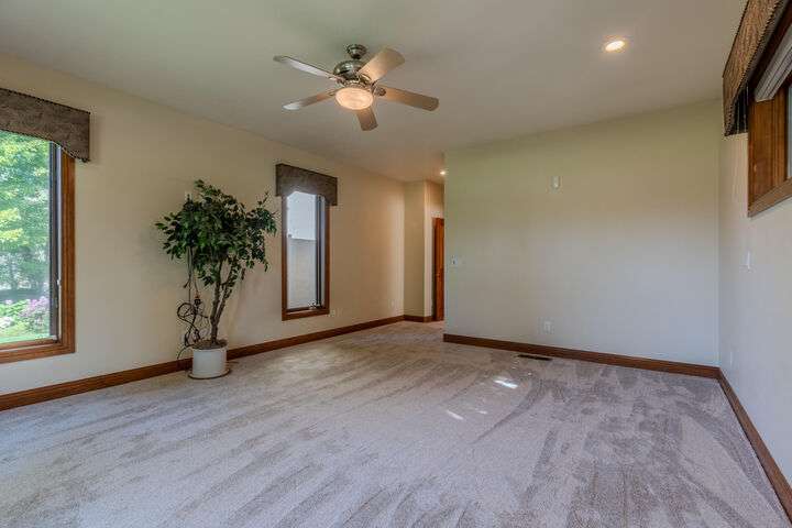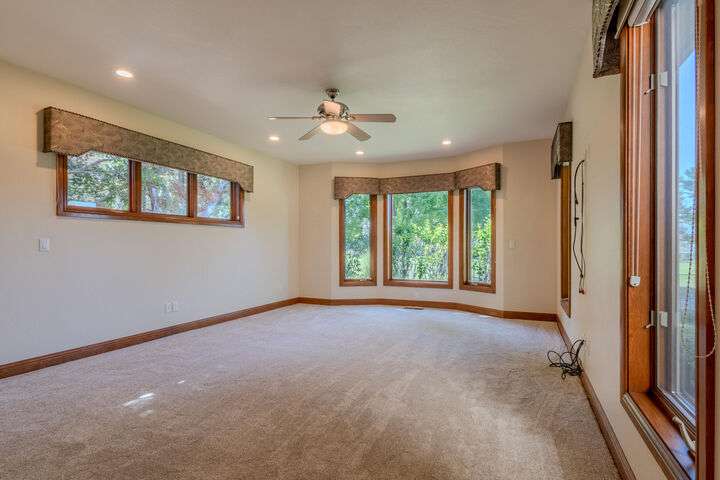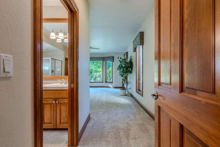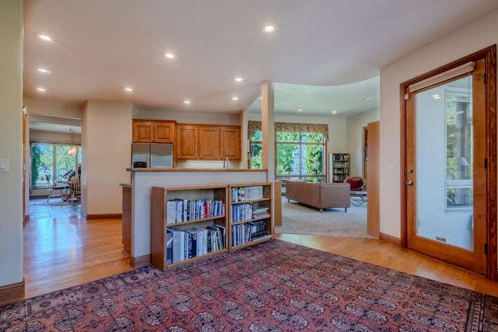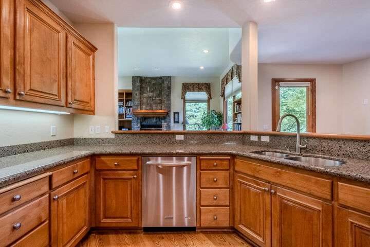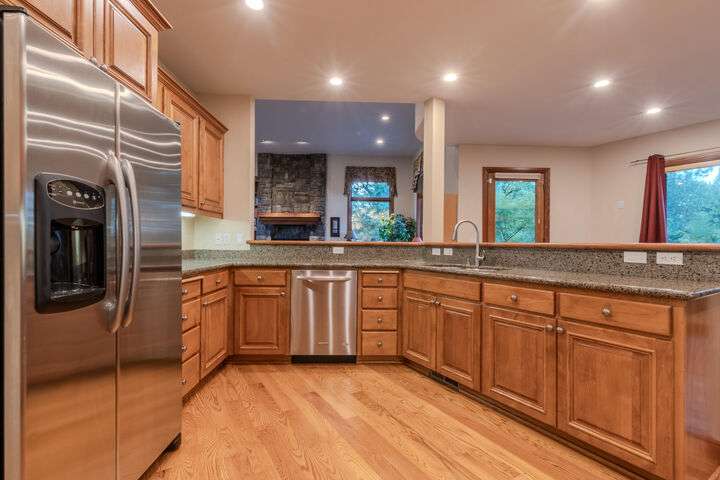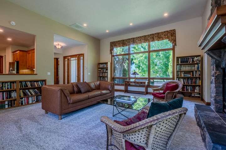 EXPERIENCE LUXURY LIVING ON THE GOLF COURSE in the highly sought-after Island Pointe Community! Perfectly positioned along the 5th and 12th holes of RVCC, this 3,025 sq. ft. Mahar-built home is filled with elegance and timeless design. Enter to beautiful slate floors that open into a breathtaking, light-filled great room featuring soaring ceilings, walls of windows, and a dramatic floor-to-ceiling fireplace framed by custom built-ins. The gourmet kitchen boasts granite slab countertops, stainless steel appliances, hardwood floors, and a sunny breakfast nook, while the formal dining room is enhanced with custom wine storage complete with a cooling system. The main-level primary suite offers a spa-like retreat with double vanity, soaking tub, shower, and walk-in closet. Upstairs includes a spacious loft/office, two bedrooms with stunning views, and a full bath. An oversized 2-car garage with storage connects to a large laundry room for convenience. Don't miss out on your forever home!