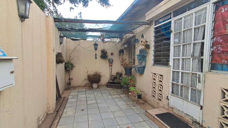 Semi-detached house, cosy and neat with pressed ceilings. Walled all around with secure parking in the driveway and an entrance courtyard. Enter the into the sunroom and step into the living room. The kitchen has space for a dining table, with double sink. The two bedrooms are spacious, and the smallest room next to the living area can be used as a bedroom or a study. There are no built in cupboards, but the wardrobes can be discussed. The bathroom includes a shower cubicle, bath-tub with hand-shower, hand-basin and toilet. The outside rooms include the original garage that has been converted to a laundry area with a sliding door. There is a store-room and an outside toilet. An area to sit outside and braai at your leisure. A long carport for 3 cars and another car with no cover can fit in this long drive-way offering secure parking. Good security all around with burglar proofed windows and security gates. Burglar alarm connected to armed response. The house is walking distance to Southdale Shopping Centre. Contact me for us to look at this home.