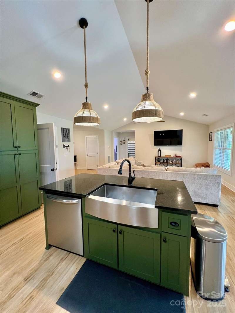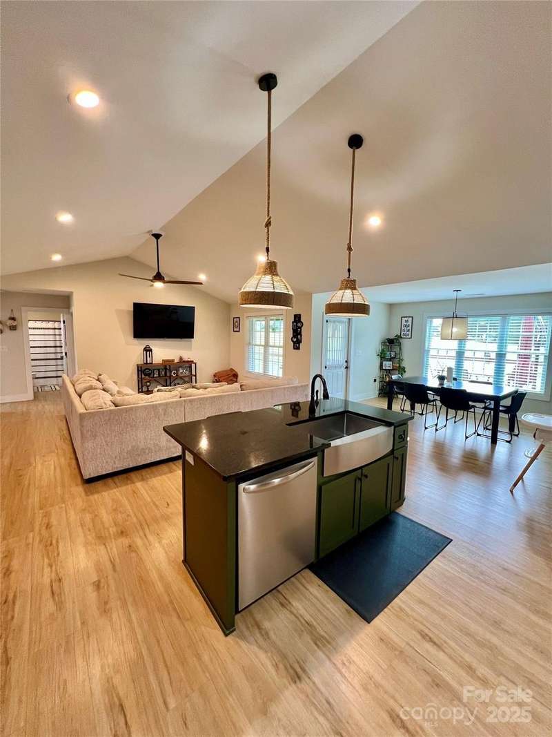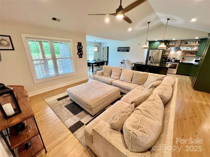 Like new property on almost an acre 3br/2ba near Lake Hickory. As you walk into the foyer in the front door, you will feel the spacious open area with vaulted ceilings, recessed lighting and LVP flooring. 8ft ceiling in the dining area and an island with kitchen sink and granite counter tops. Open wood shelves add character and includes all SS appliances. There is room in the upper cabinet for a microwave with a receptacle. Craftsman country style doors throughout. Step outside the dining area onto the covered rear porch accented with stained timber and beaded pine ceiling. Utility room is a bonus! There is also a double attached garage on the house, but also features a detached garage (437sf). There's plenty of storage area in this one level property that includes pull down attic space as well.
